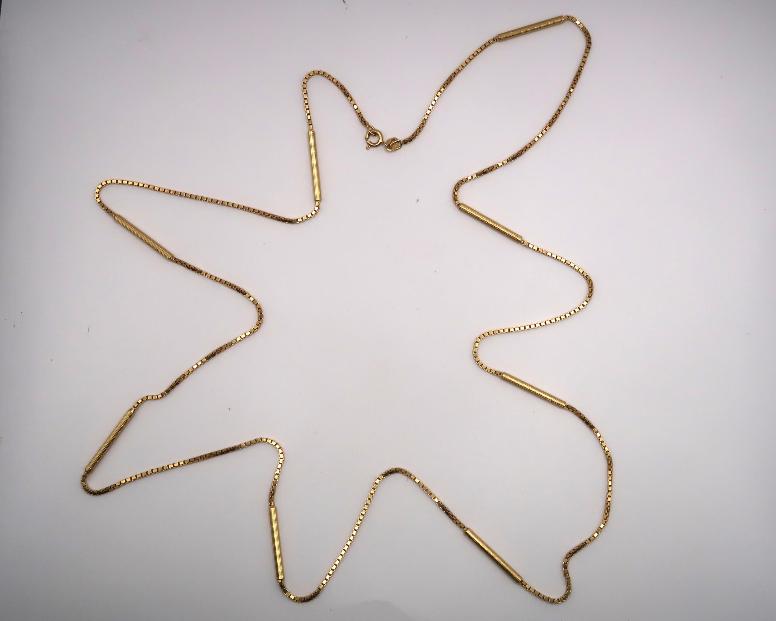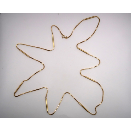 An 18ct gold necklace of box-link and textured bar form, 83cm long, 14.3g.
