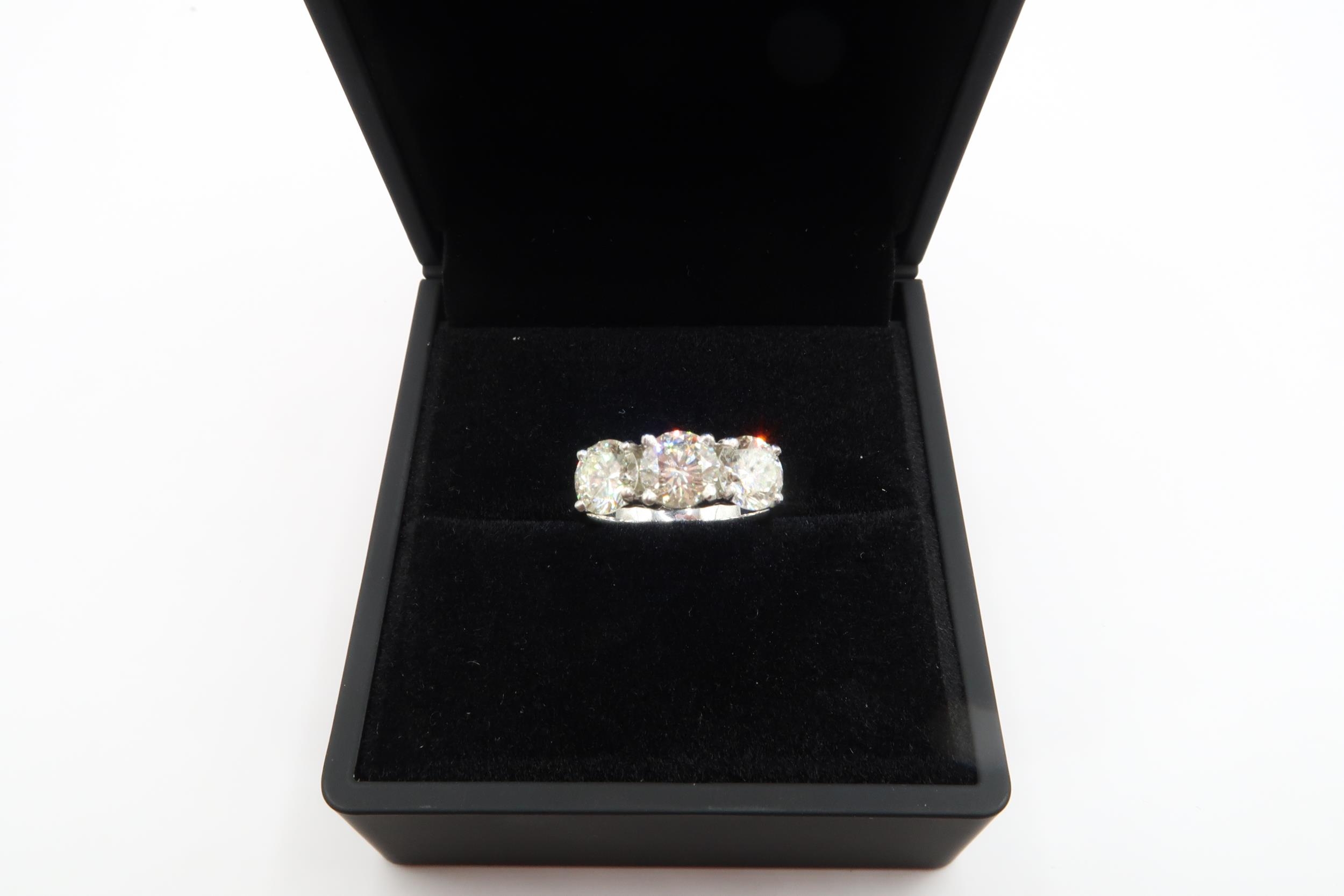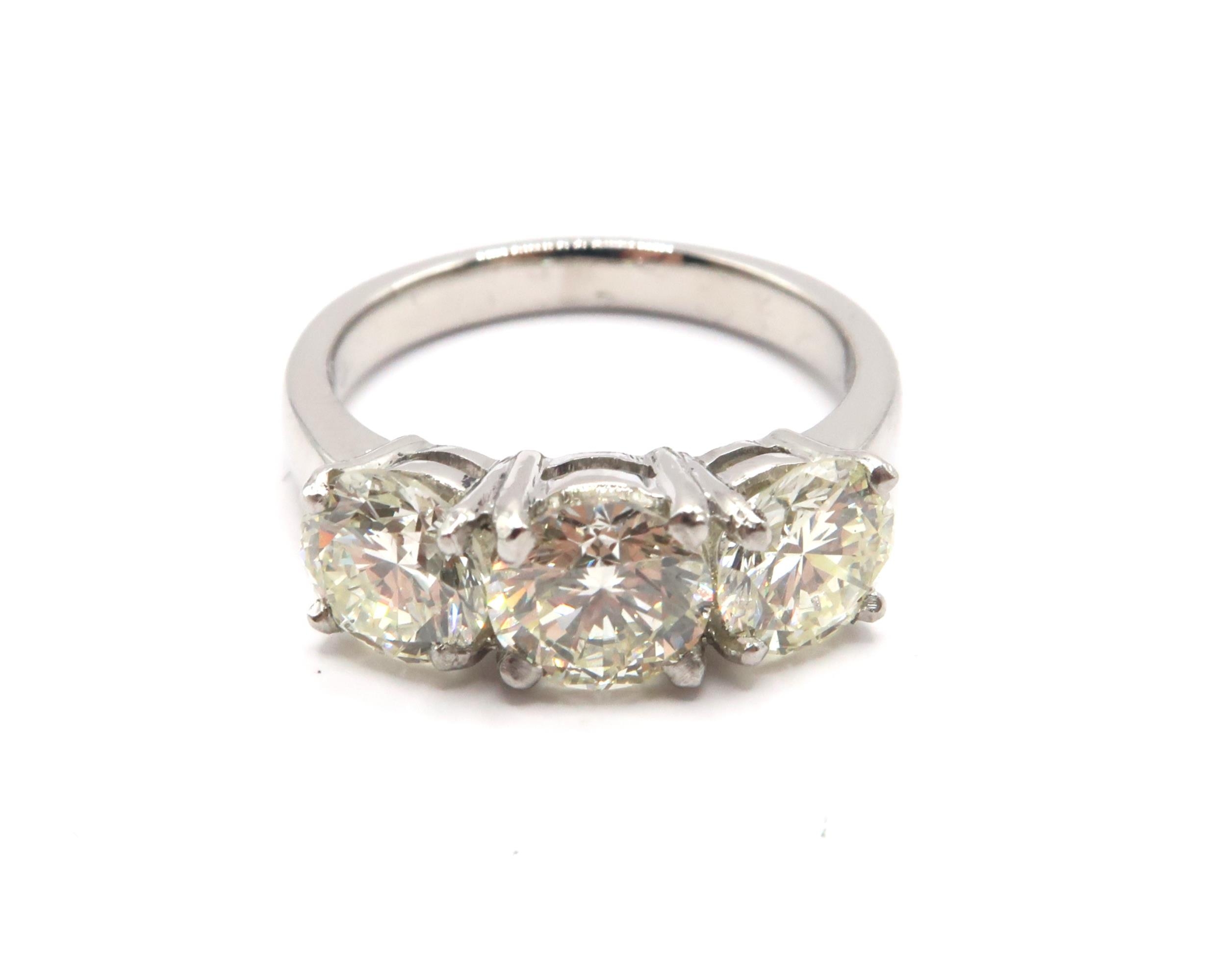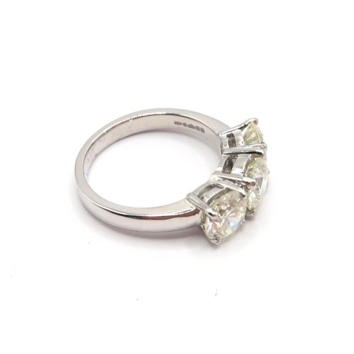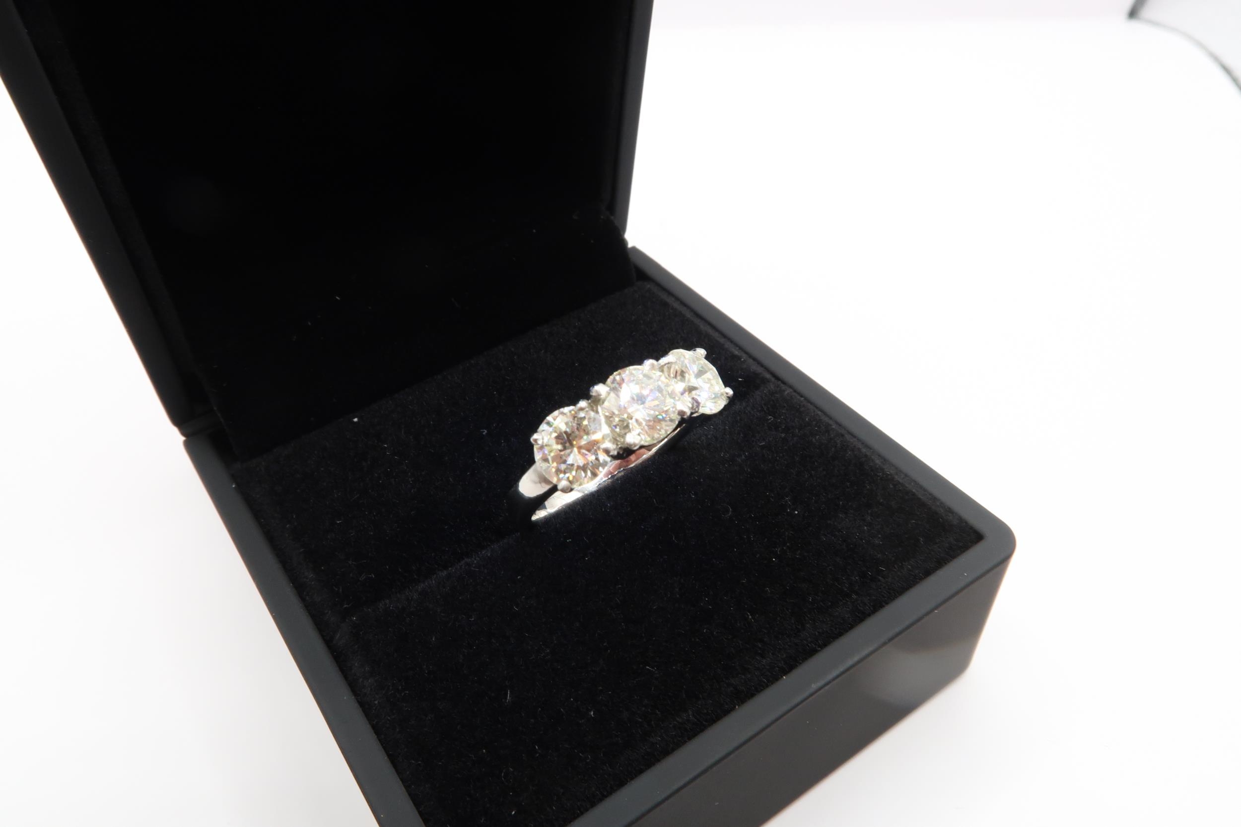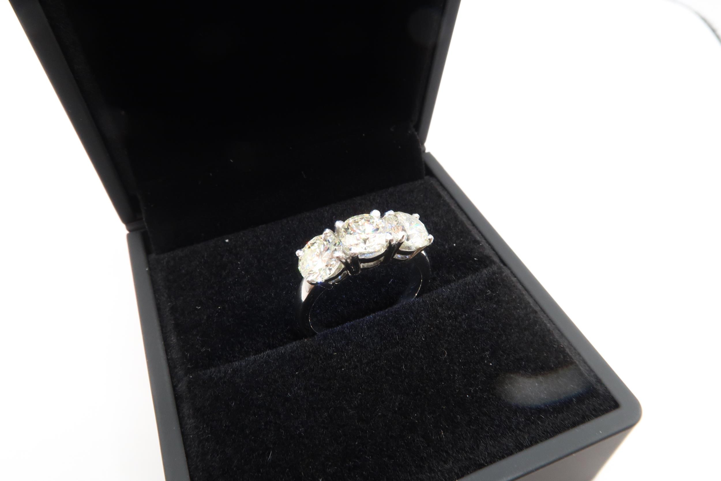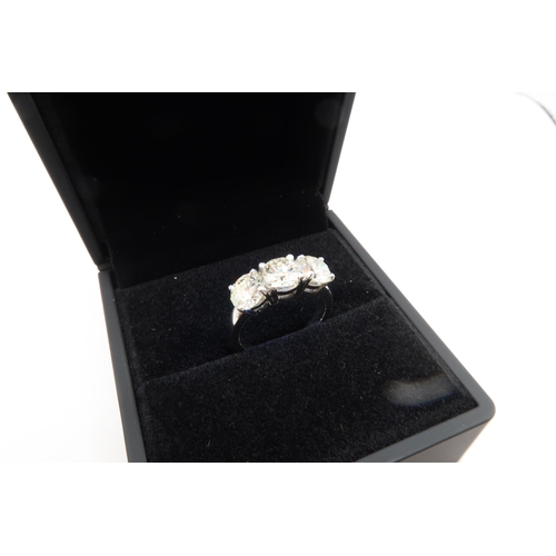 A Stunning Platinum 3 Stone Diamond Ring, Diamonds are well Matched and Good Colour and Clarity, Colour approx. J, Clarity approx. VS1, total diamond weight approx 2.92ct - Comes with a Current GIE Certificate and Valuation, Ring Size approx. L/M