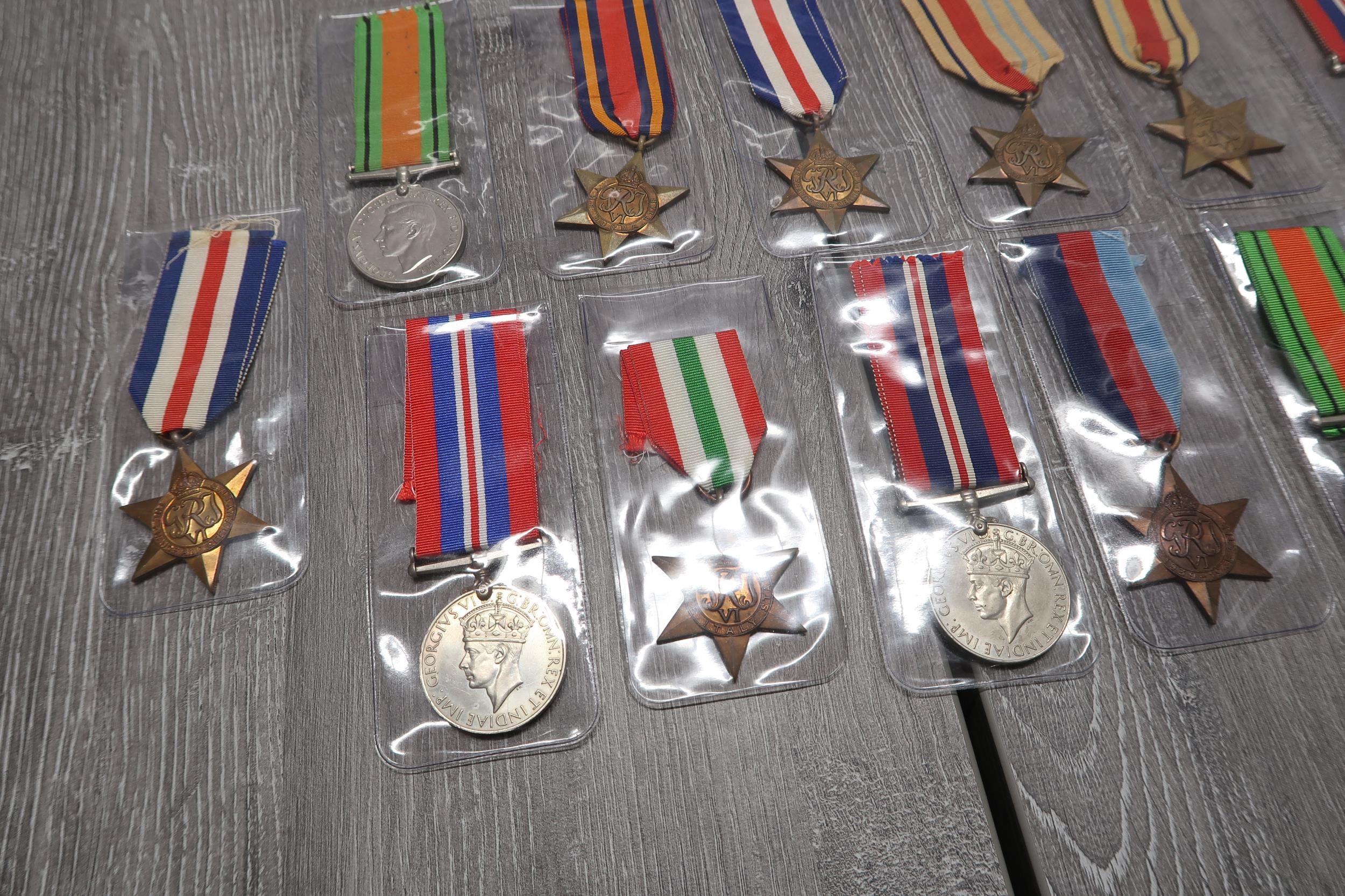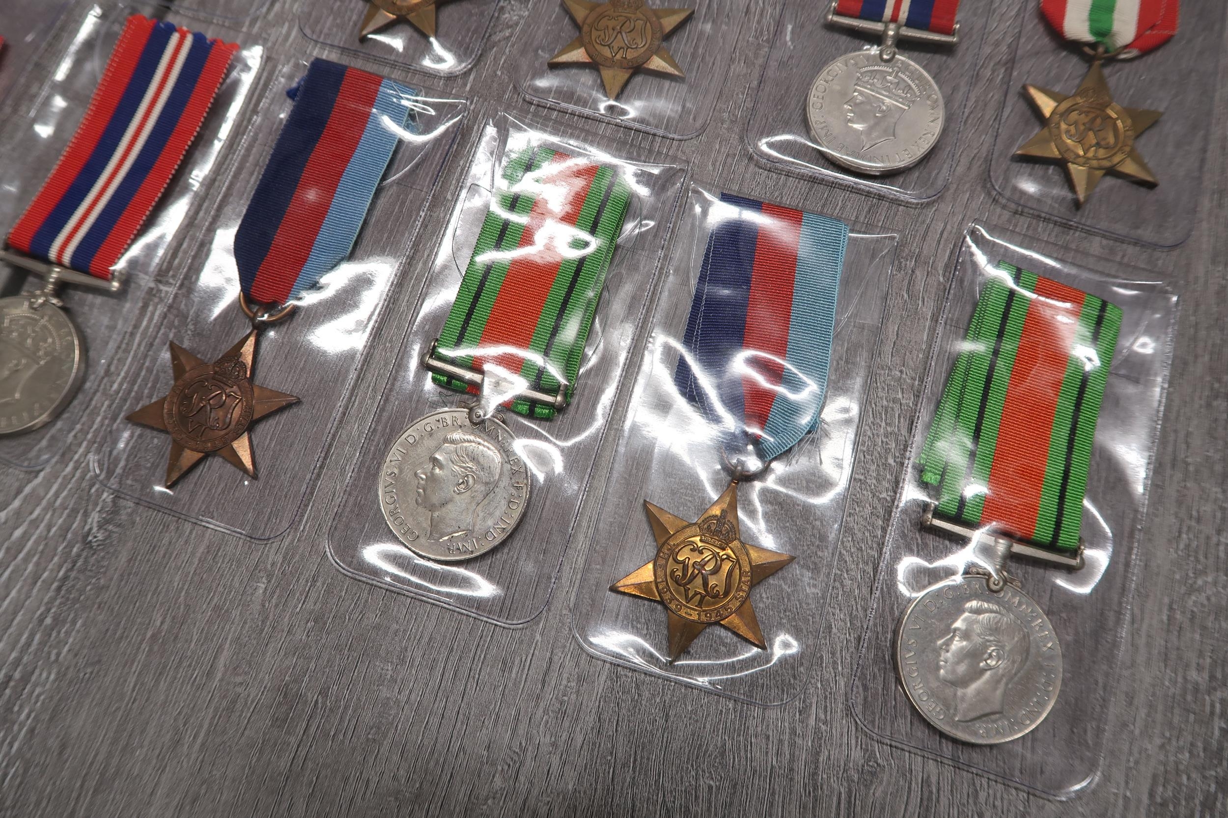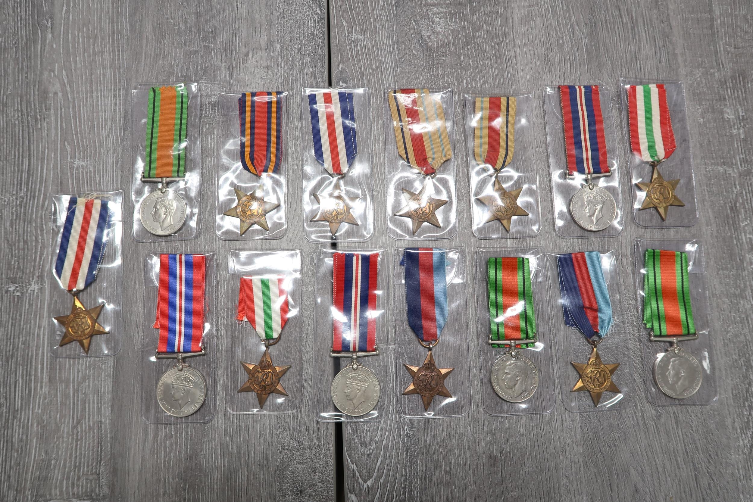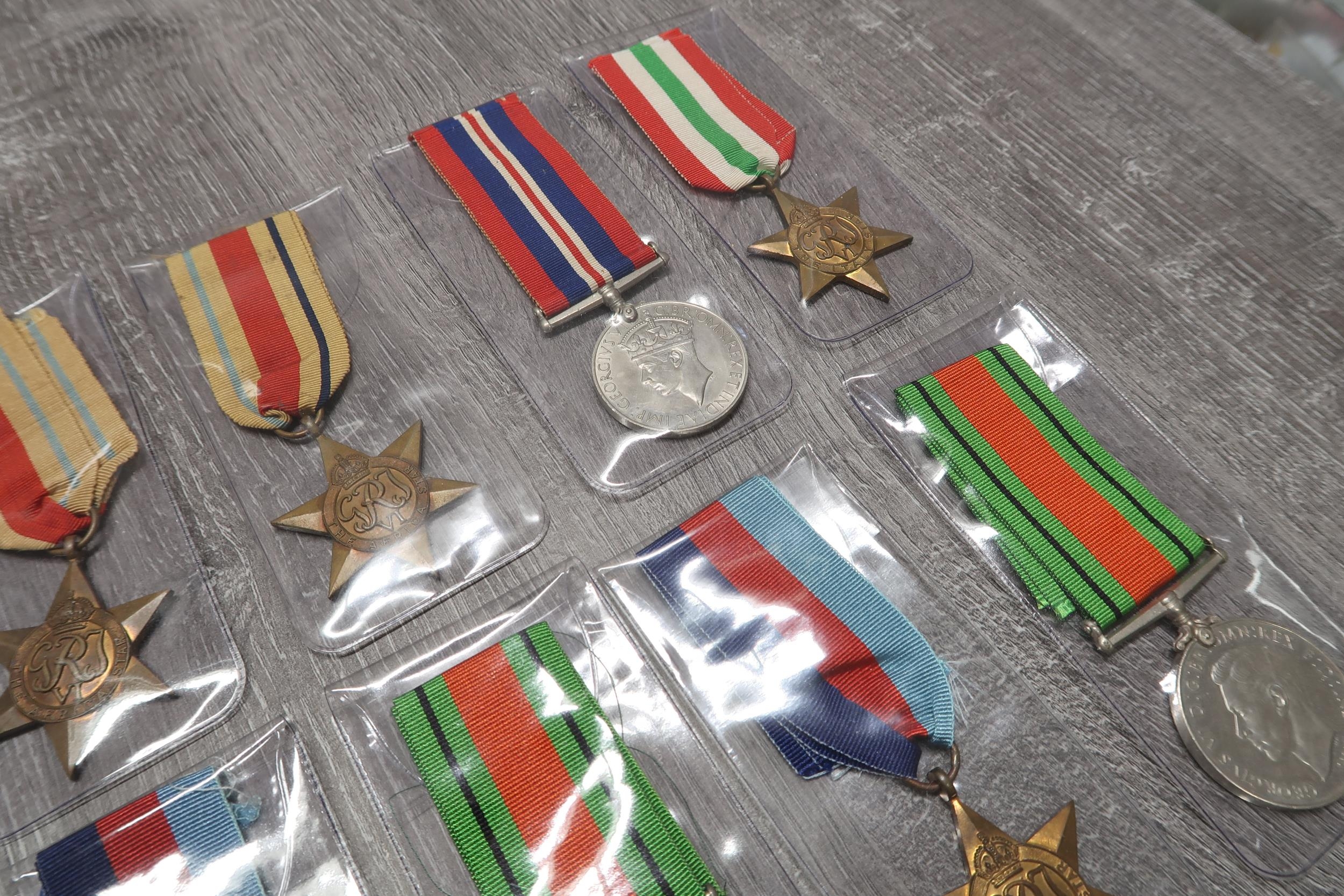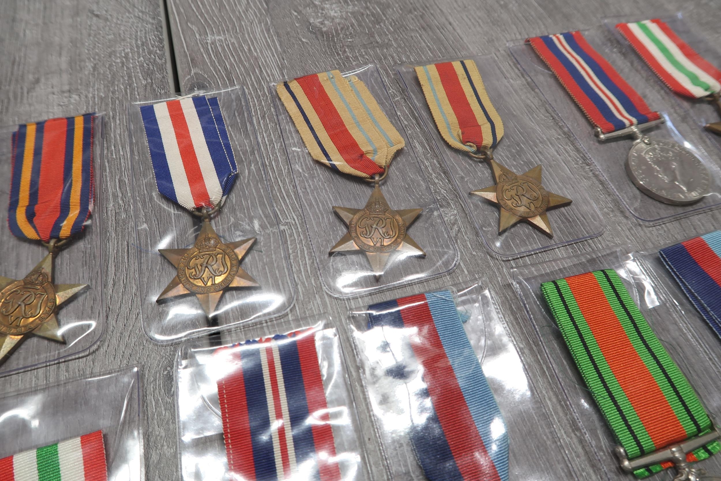 A Large Group of Assorted British WW2 Medals & Ribbons to include Defence Medals, North Africa Star's, 1939-45 Star and others (16 Total Medals)