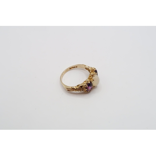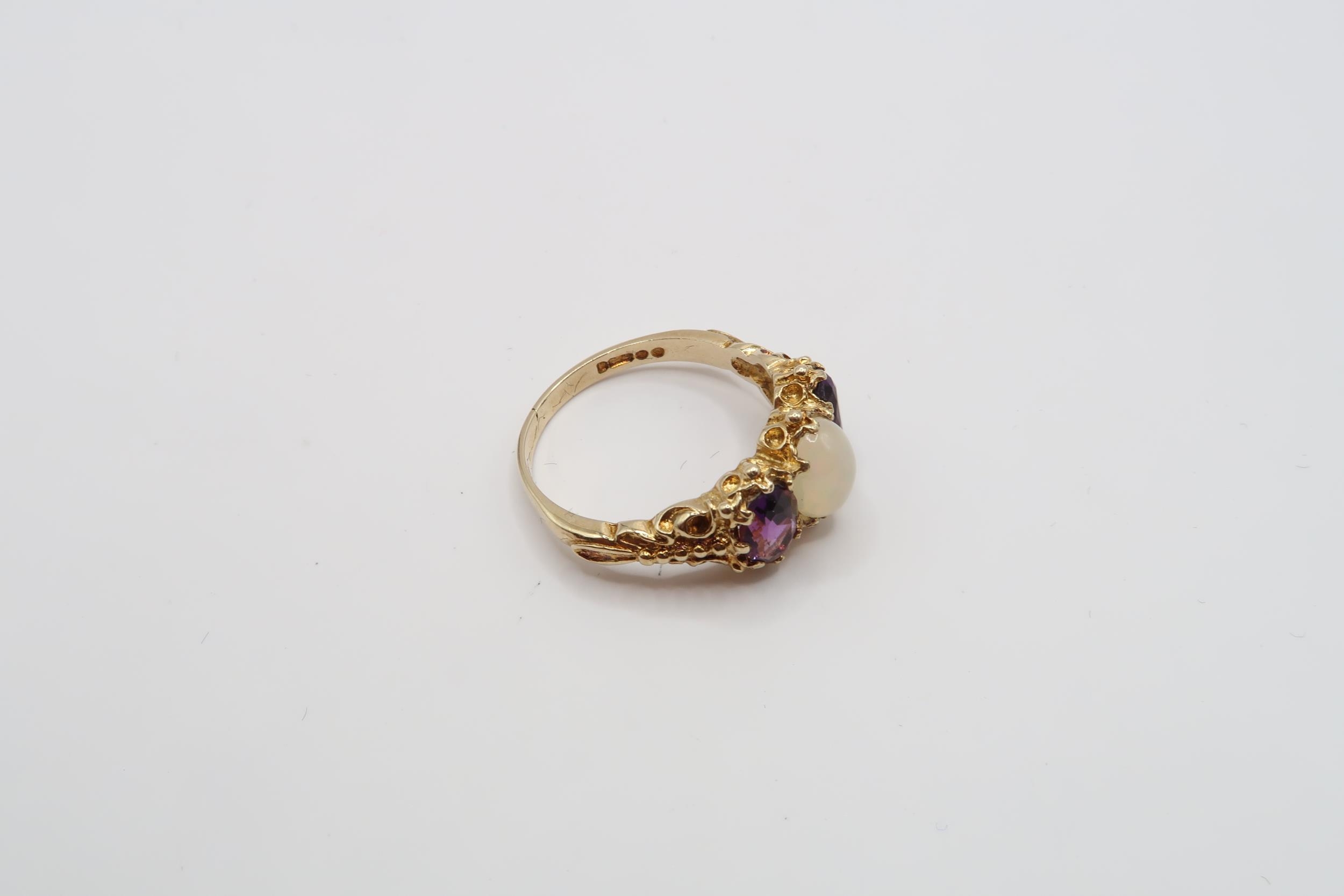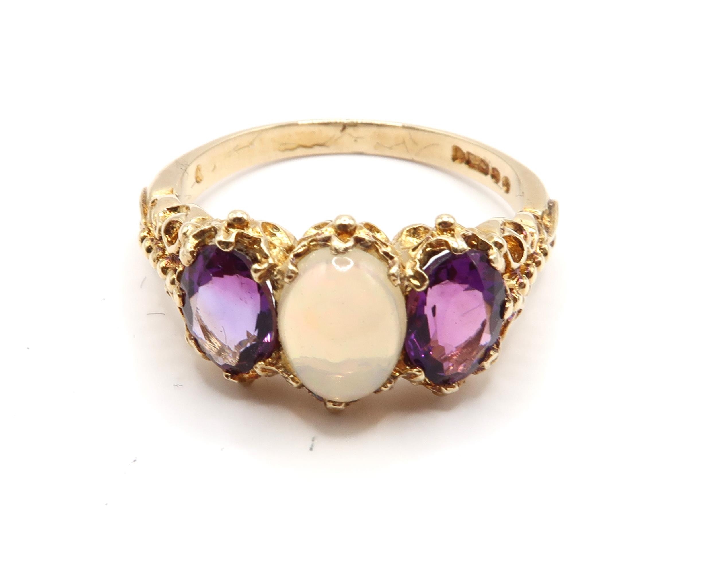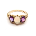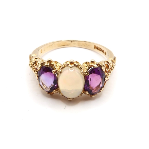 A 9ct Yellow Gold Victorian Style Amethyst and Opal Ring, Amethysts are a very Good Colour and Well Matched, Head Size approx. 17mm x 10mm, Ring Size approx. P/Q