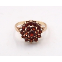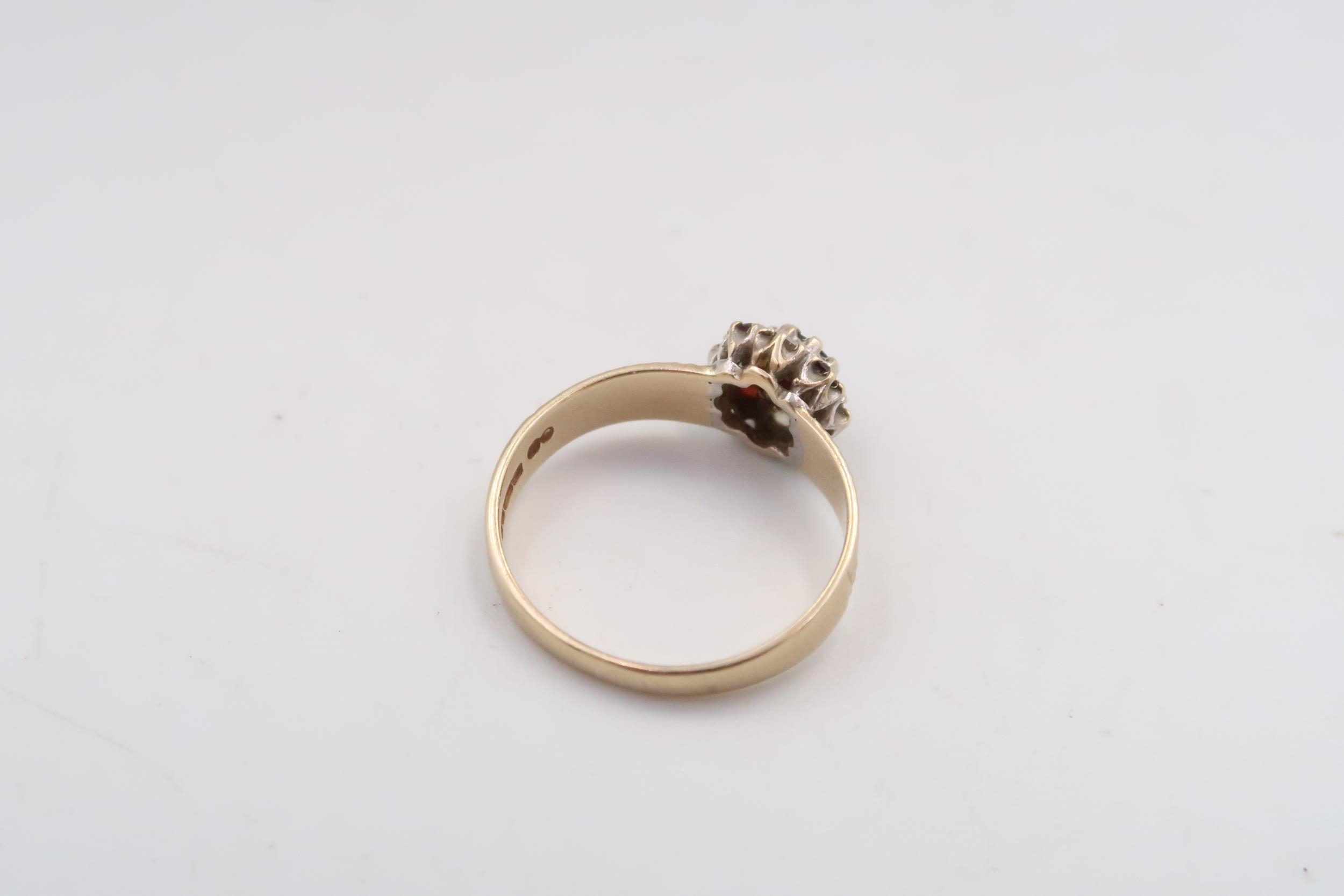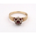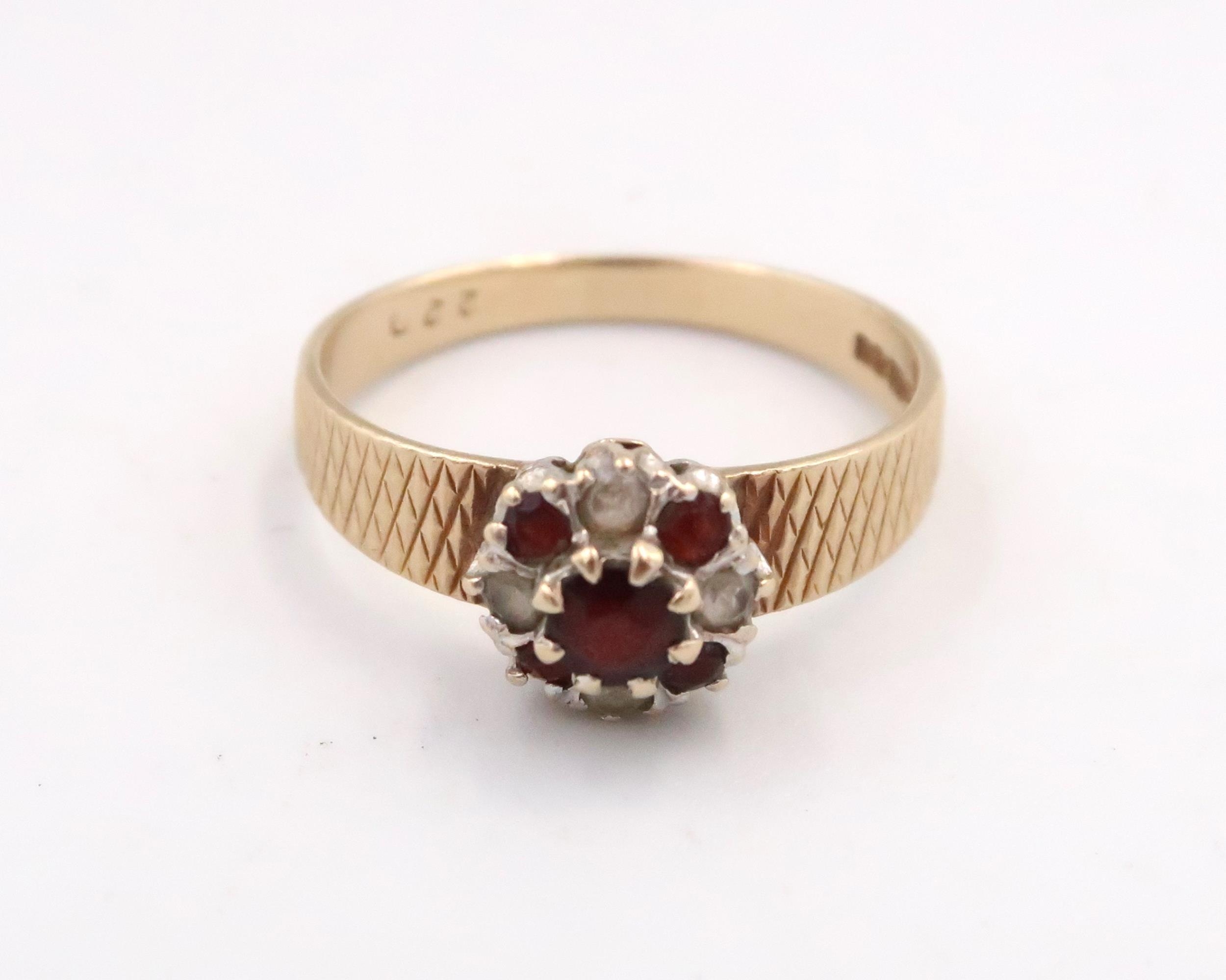 A 9ct Garnet & White stone cluster ring. Weight: 2.6g Size...