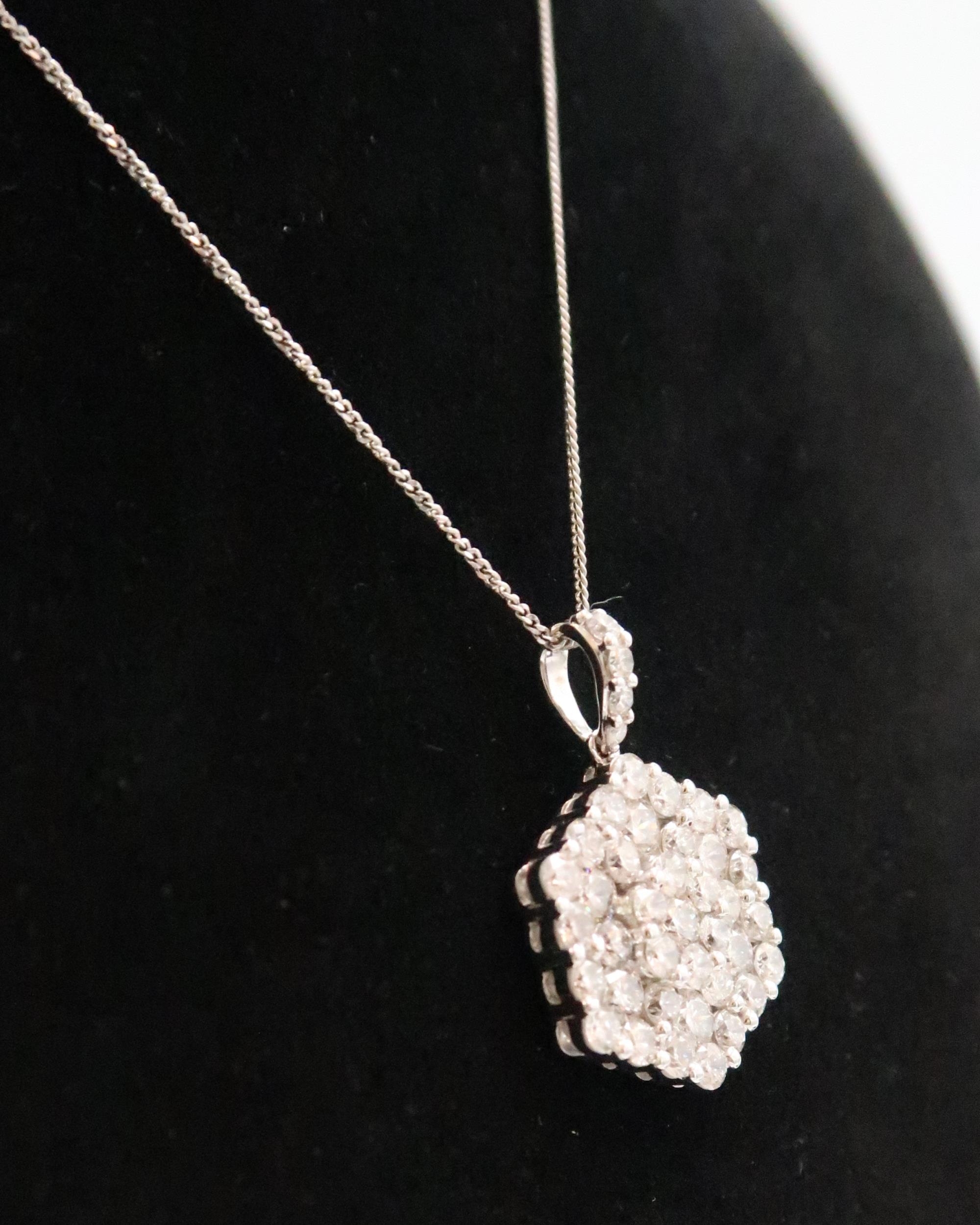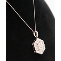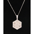 An 18ct gold hexagonal diamond cluster pendant. Estimated total diamond weight 1.55ct. Estimated H/I SI2/I1. Weight 5.52 grams