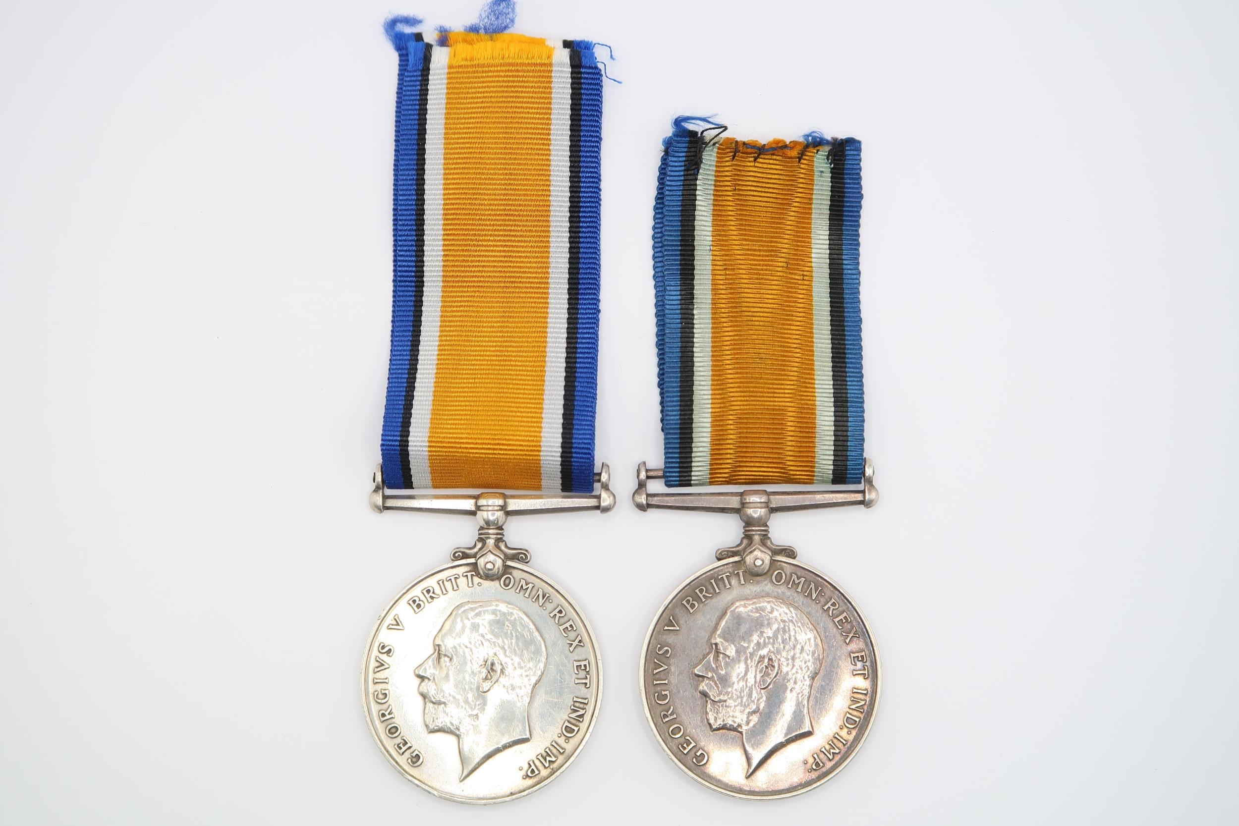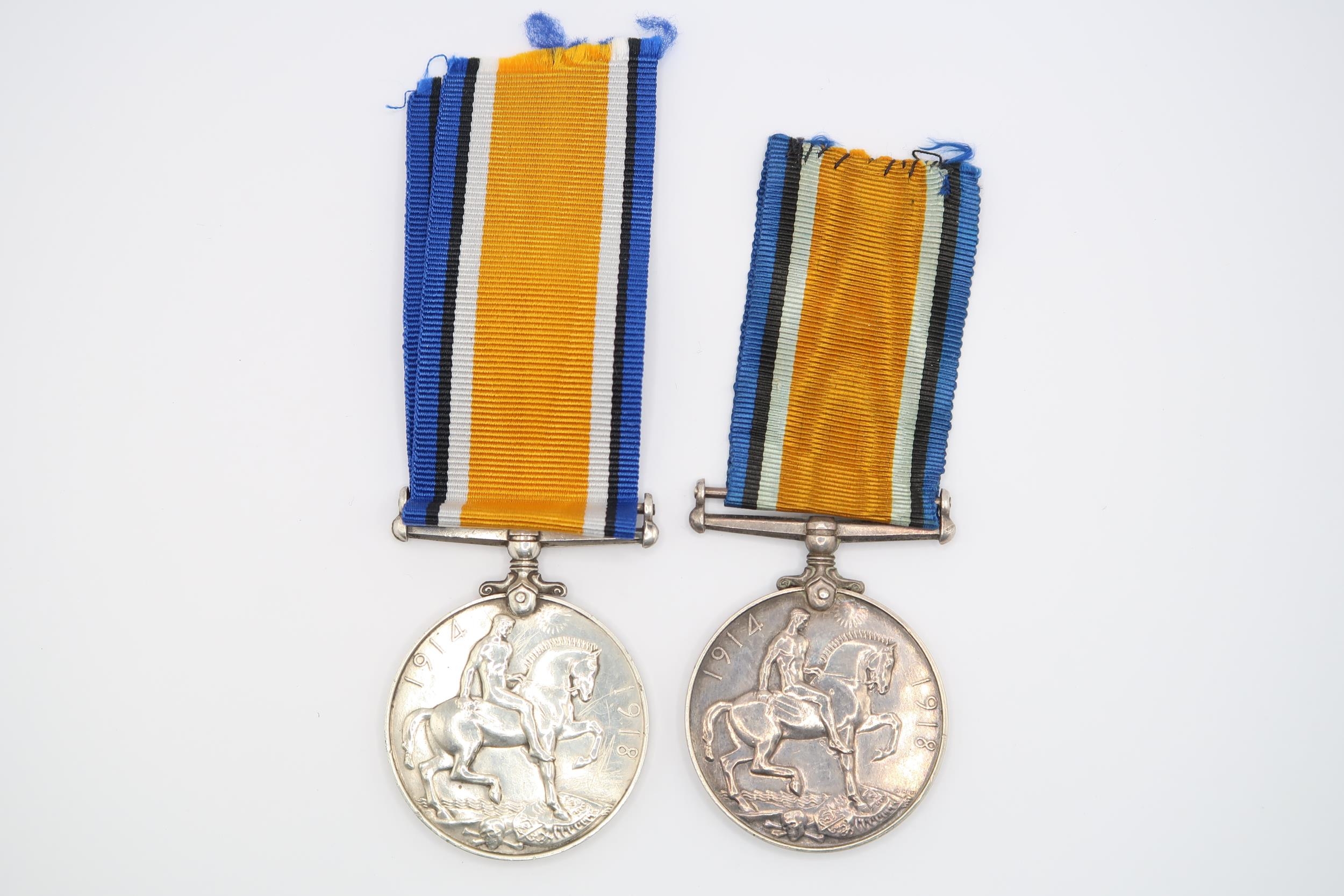 A Pair of British WW1 War Medal 1914 - 1918, Issued to PTE. Ralph B Hunt 47208, 32640 Lincolnshire Regiment, Labour Corps. Together with another issued to