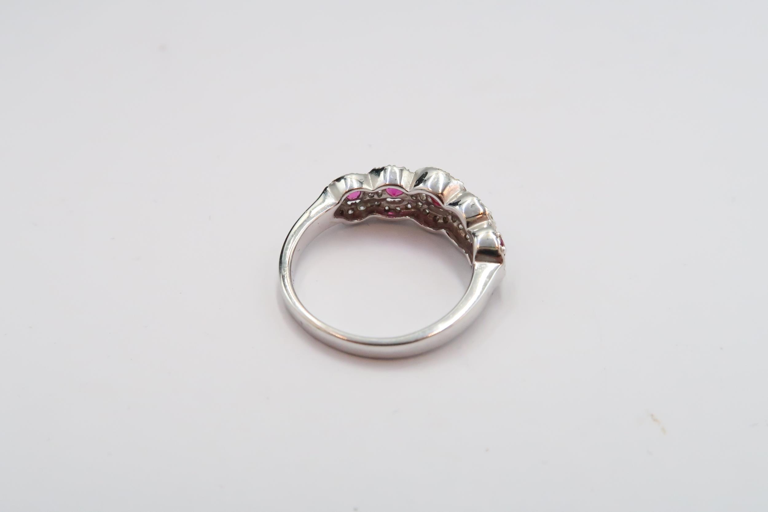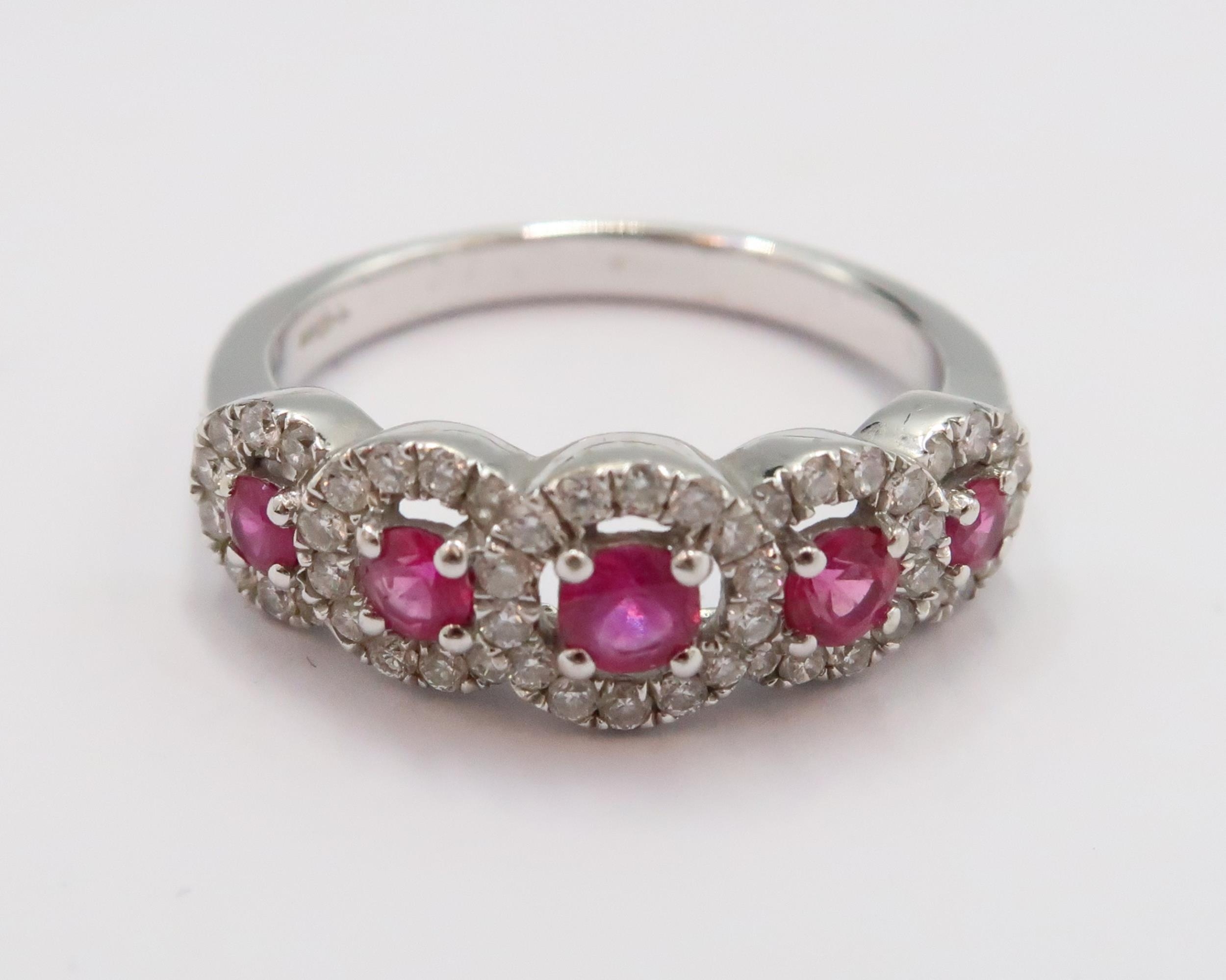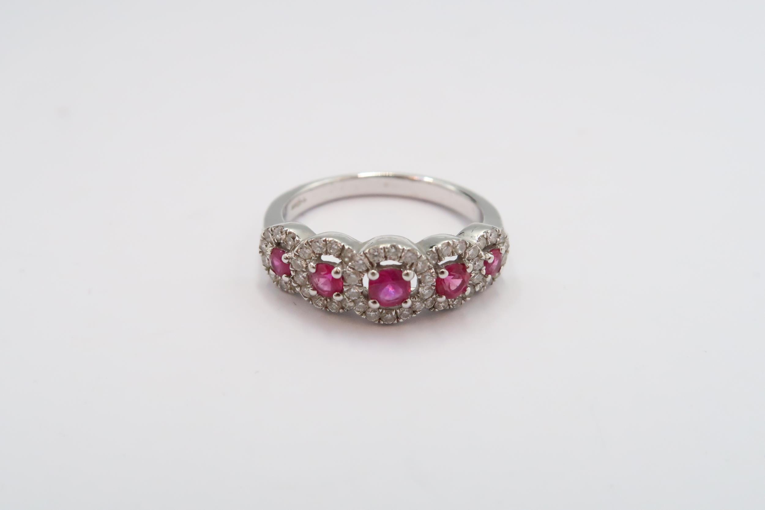 An 18ct gold graduated ruby and diamond cluster ring. Size N...