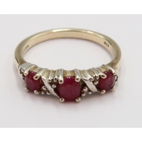 An 18ct gold graduated ruby and diamond cluster ring. Size N. Weight 3.71 grams