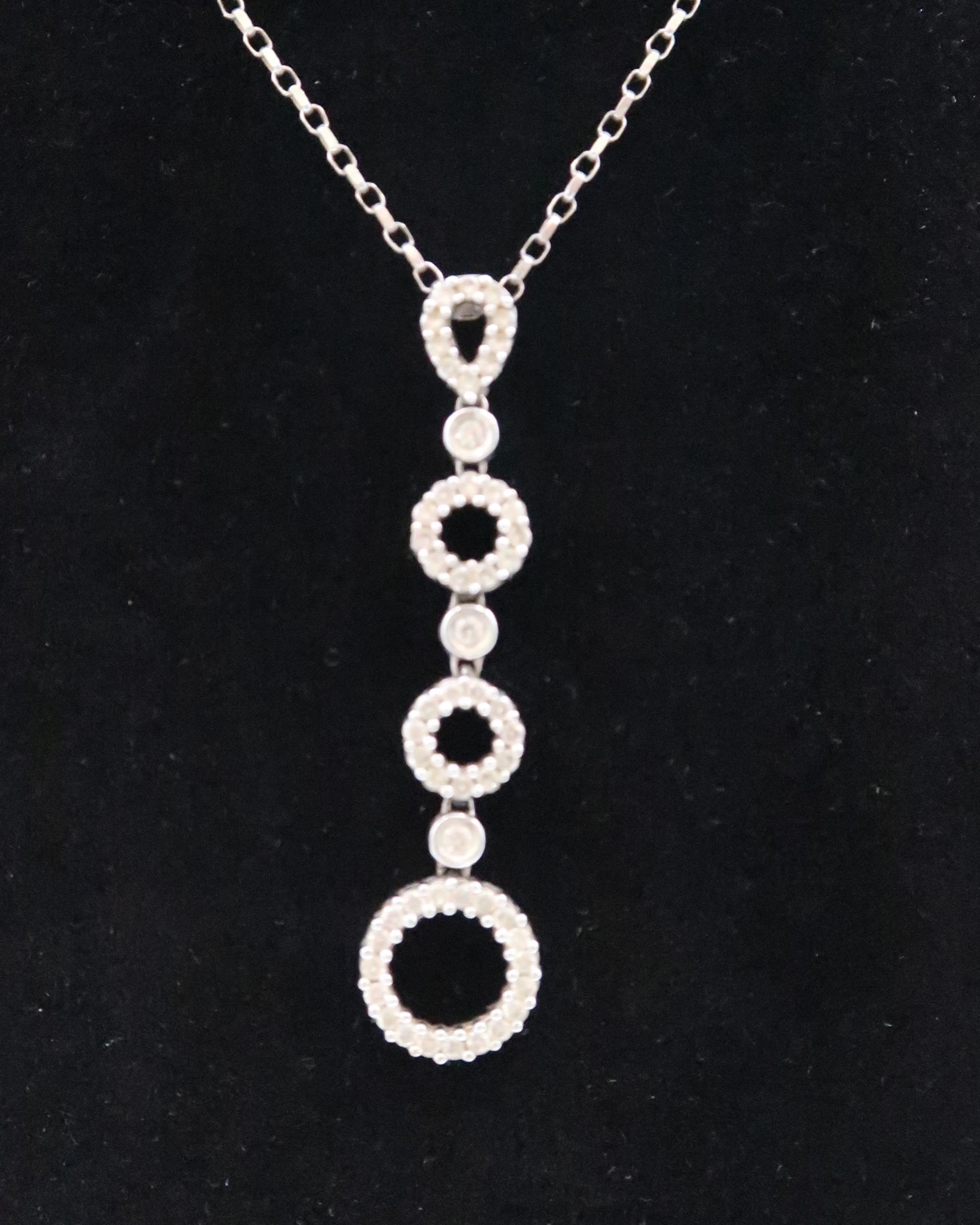 A 9ct gold diamond openwork circle drop pendant. Estimated total weight 0.60ct. Weight 4.86 grams