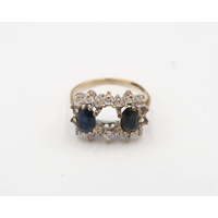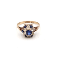 A 9ct gold, sapphire and diamond cluster ring, size N, 3.5g.