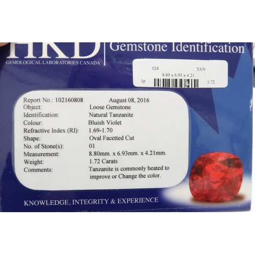 A group of three oval tanzanites 3.98cts, 1.72cts, 3.98cts