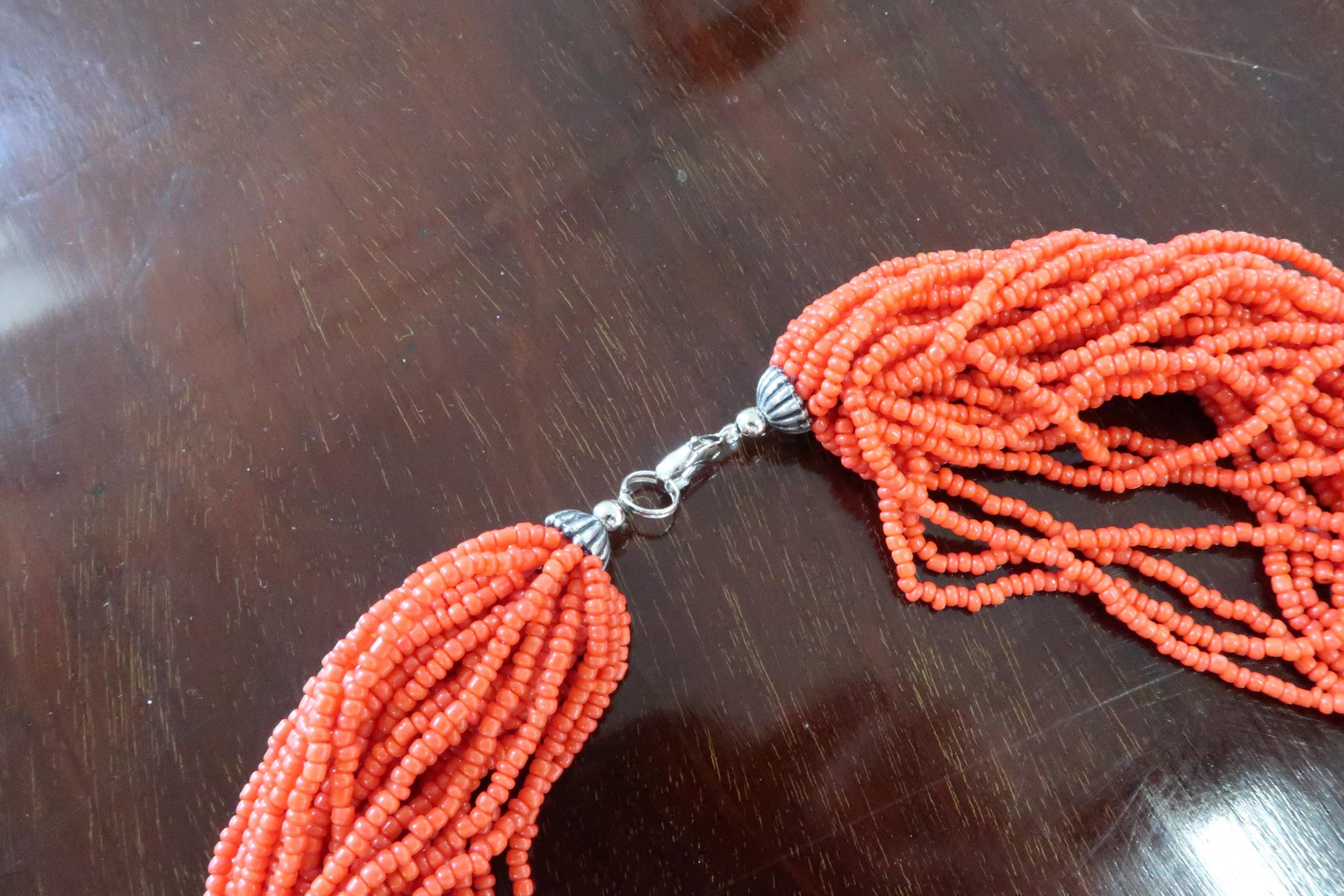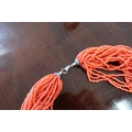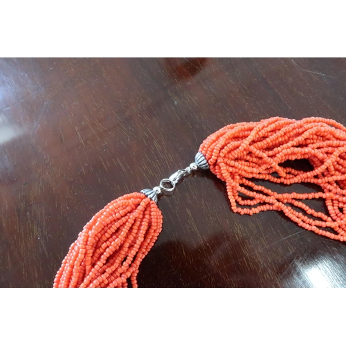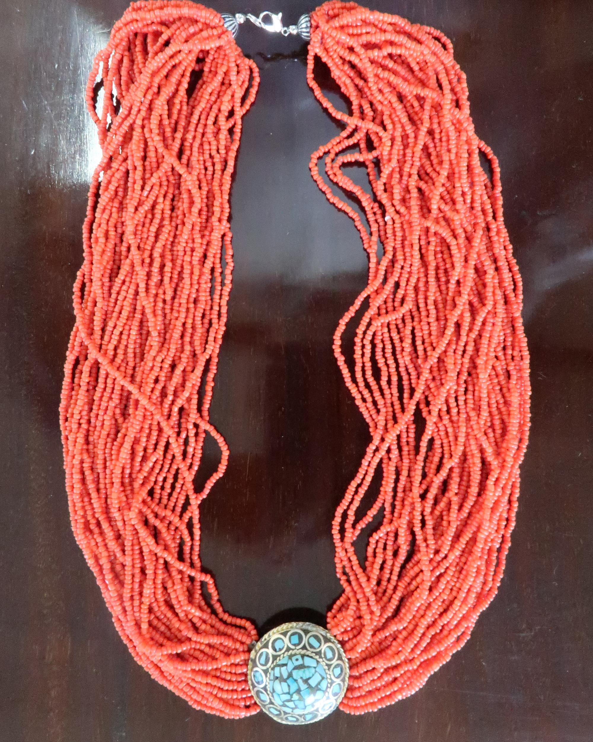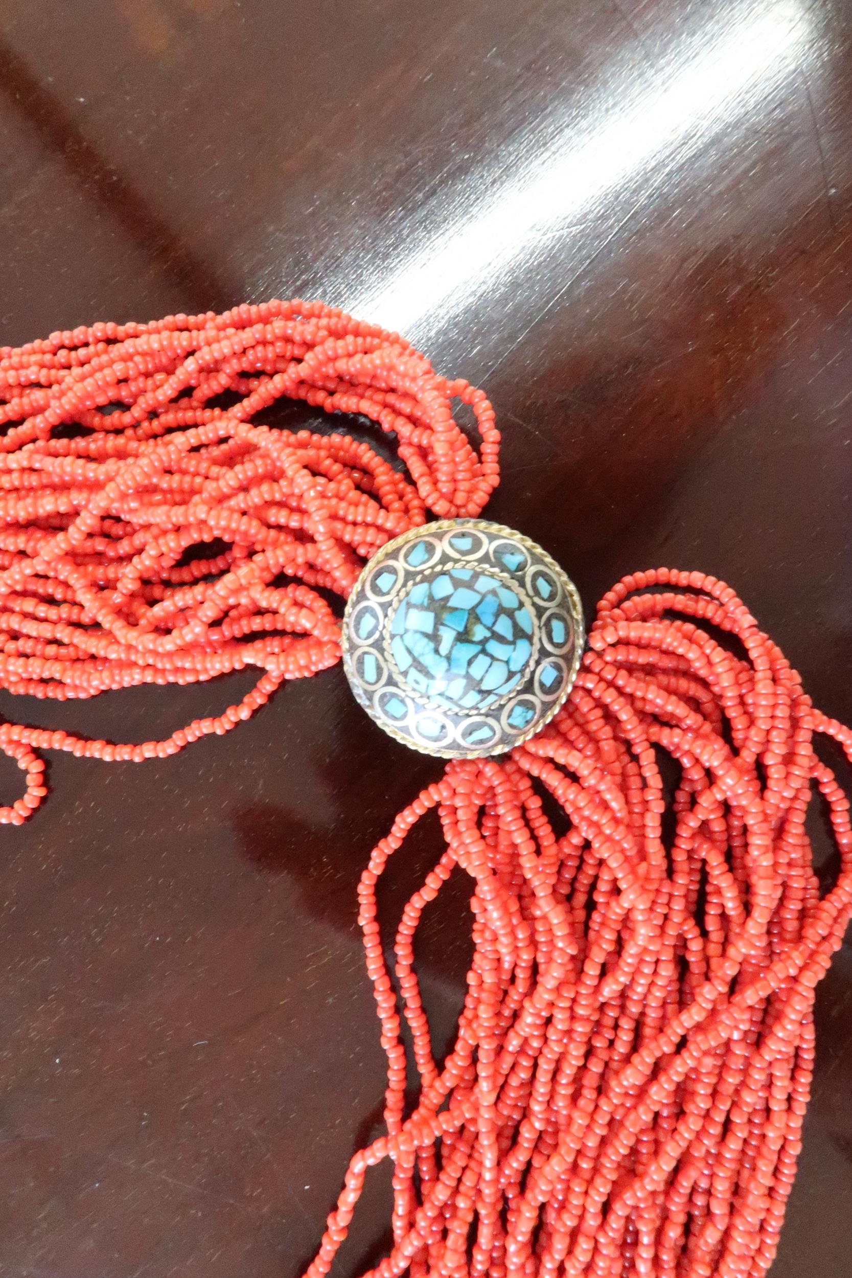 A Vintage Coral Bead Necklace with approx. 5000 plus Coral Beads with an Inlaid Turquoise Pendant, Total Length approx. 50cms Long