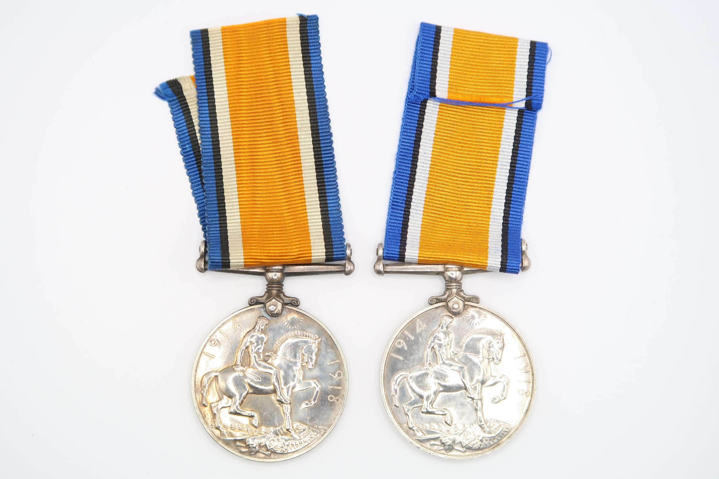 A Pair of British WW1 War Medal 1914 - 1918, Issued to PTE. A.E. BIGGS 38731, Royal Berkshire Regiment Together with another issued to PTE. Edward Megilly 39056, Lincolnshire Regiment, Labour Corps.