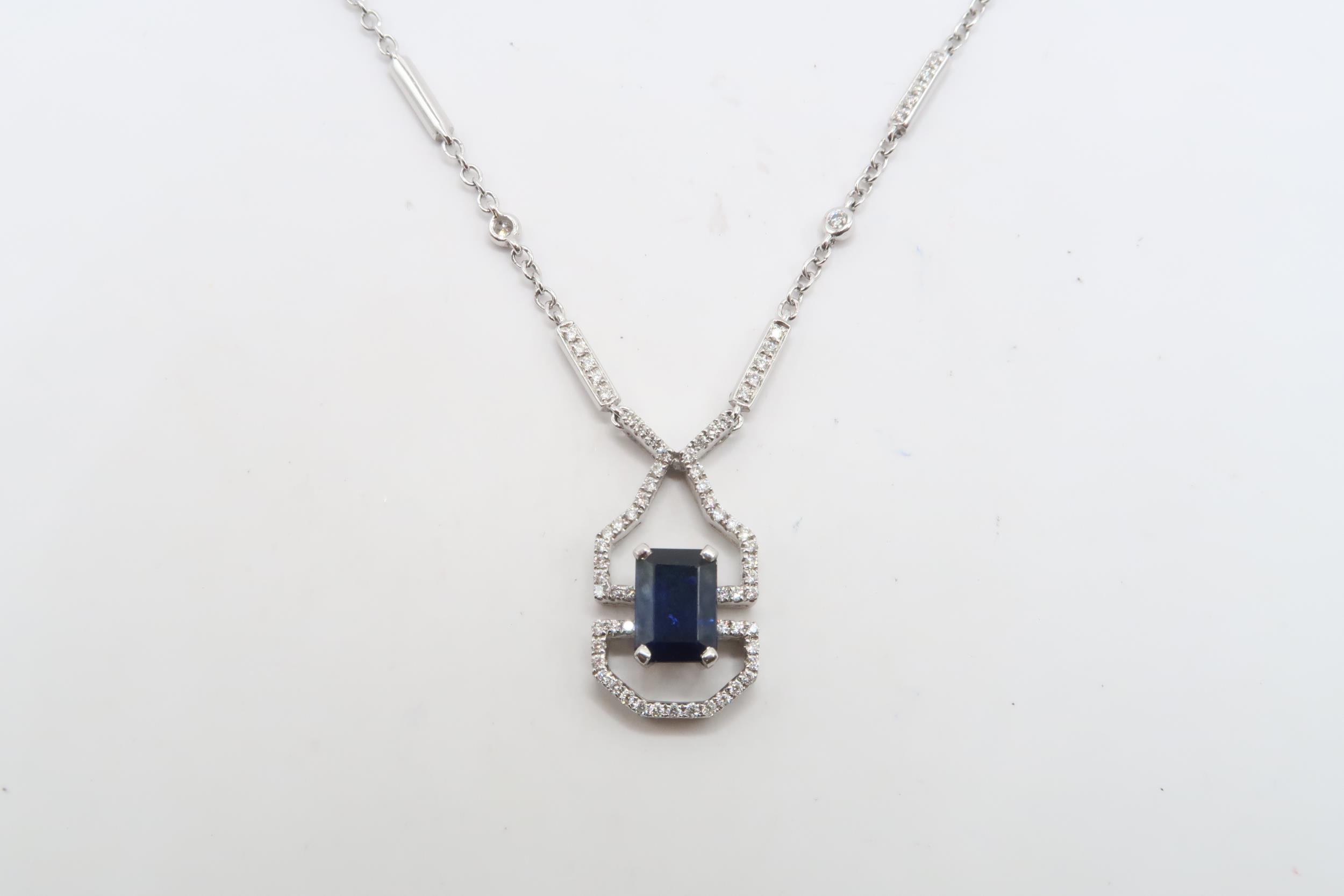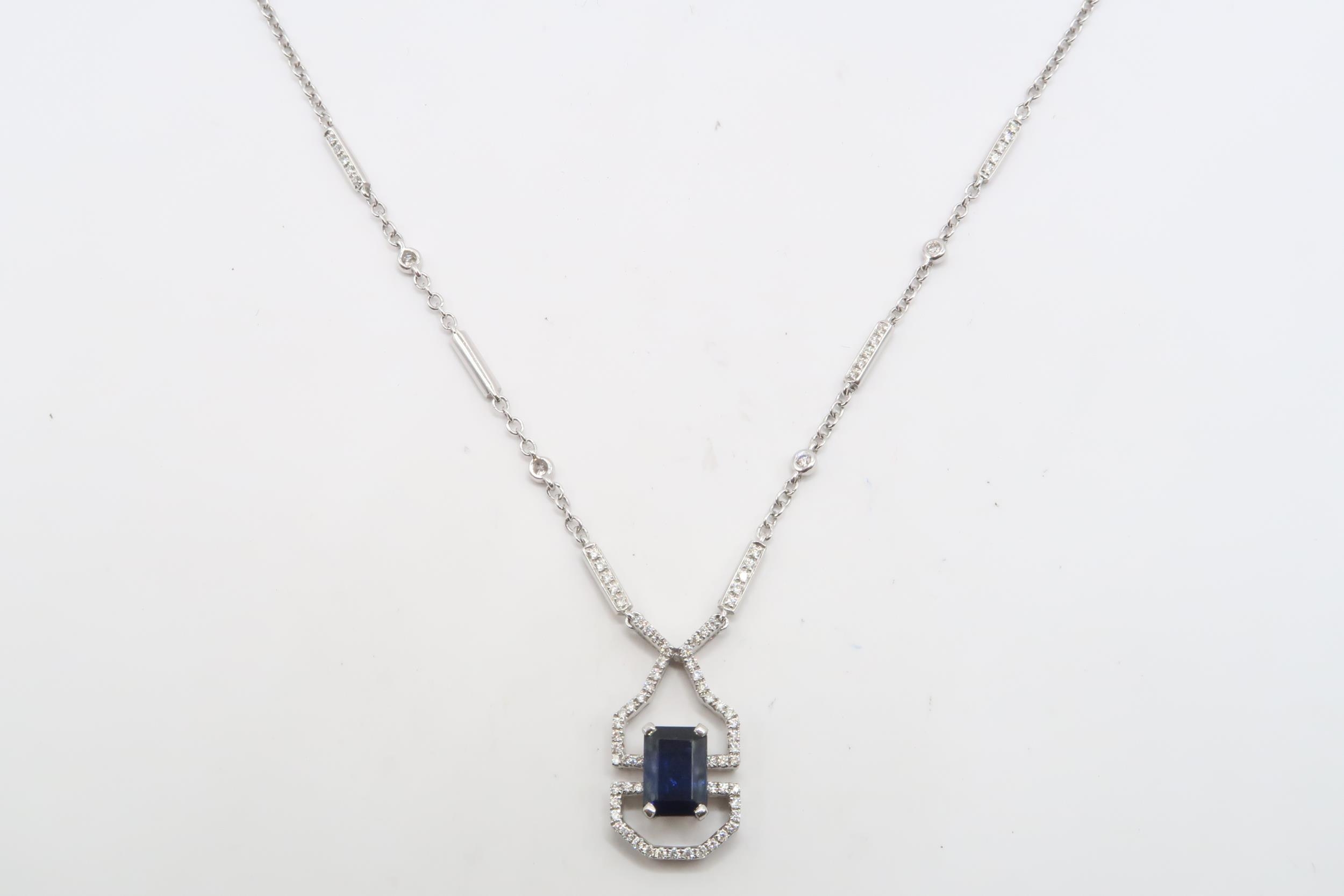An 18ct gold sapphire an diamond pendant. Diamond 0.32cts. W...