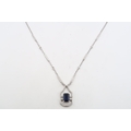 An 18ct gold sapphire an diamond pendant. Diamond 0.32cts. Weight 6.58 grams
