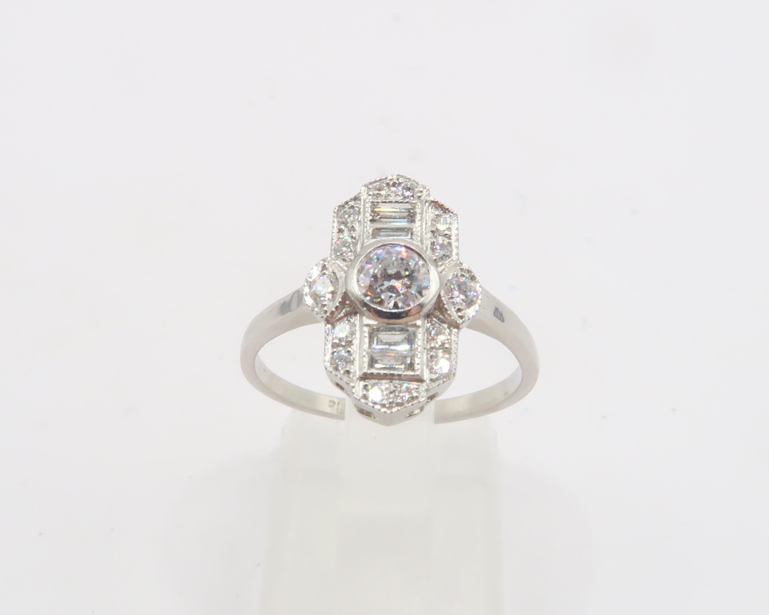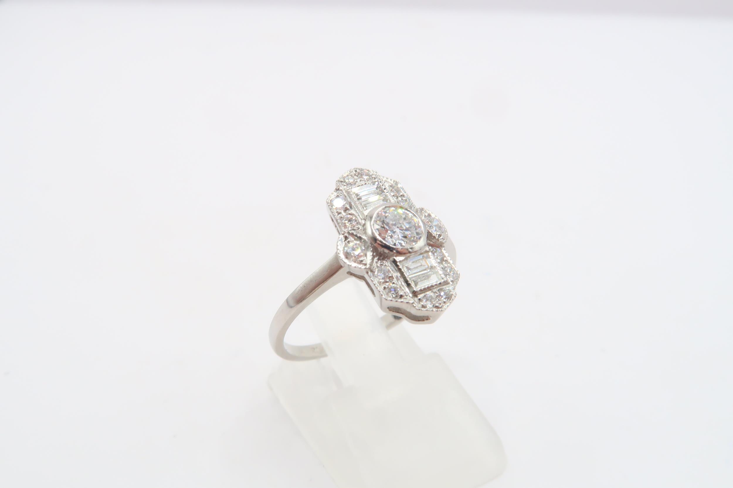 A Platinum Art Deco Style Diamond Ring, approx. 1crt of Diamonds, Diamonds are a Good Colour and Clarity, Head Size approx. 16mm x 11mm, Ring Size approx. O