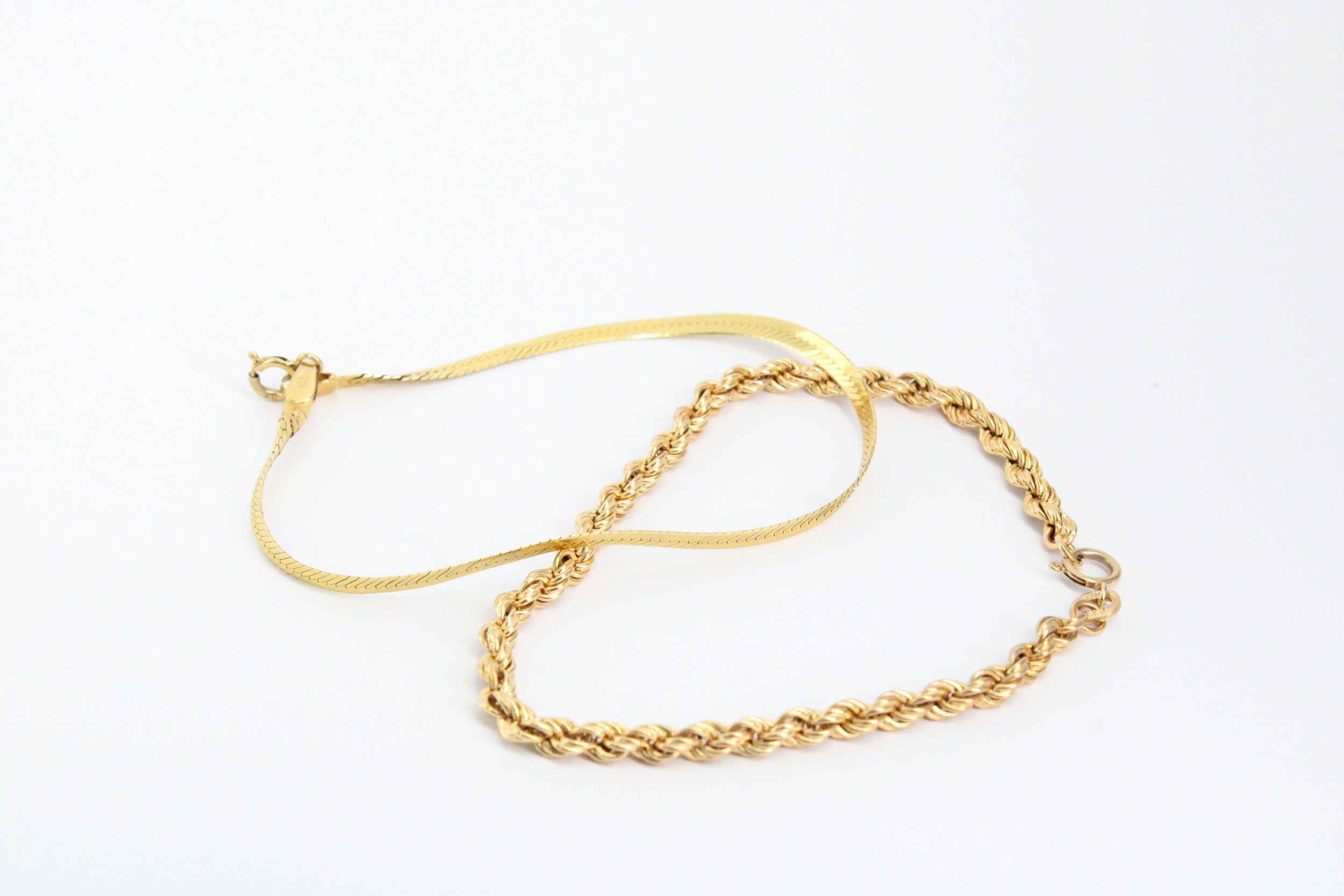 A Pair of 9ct Bracelets, Twisted Spiga and Herringbone Design. The herringbone link is approx 177mm. The twist bracelet is approximately 180mm.