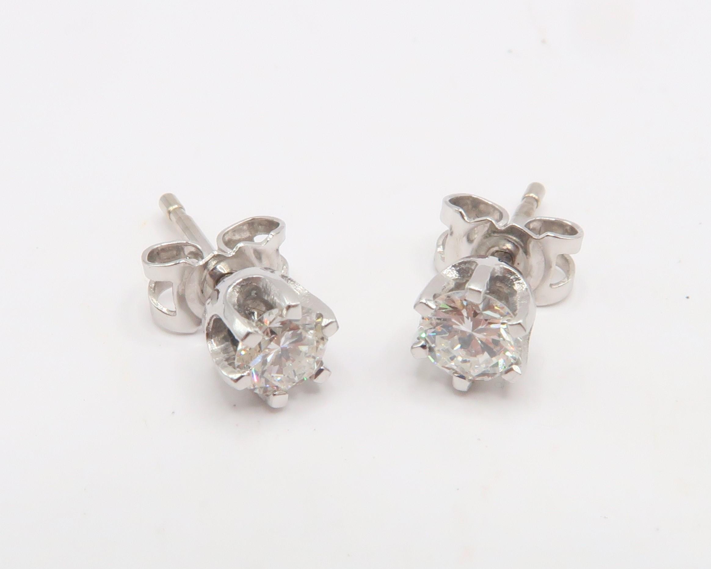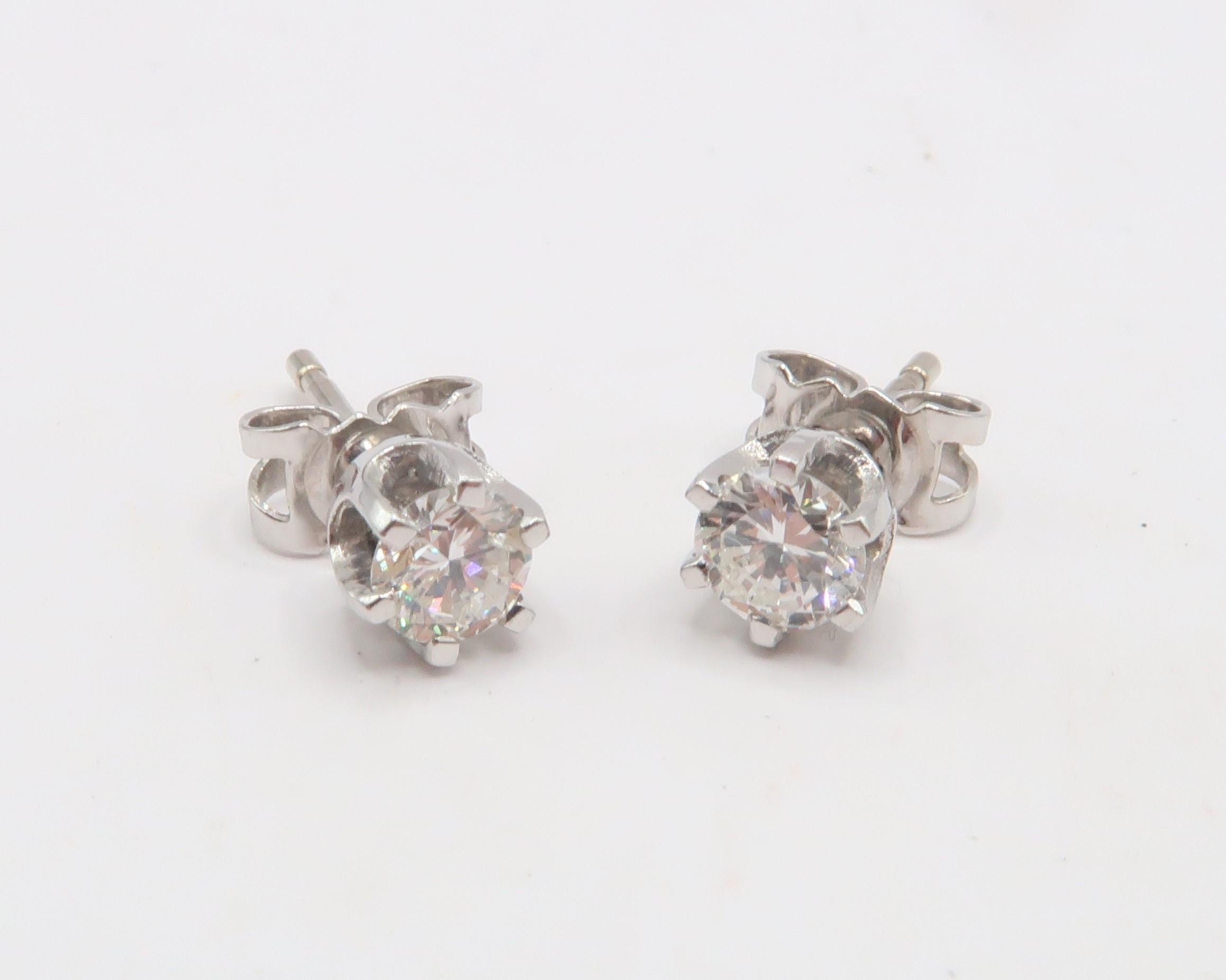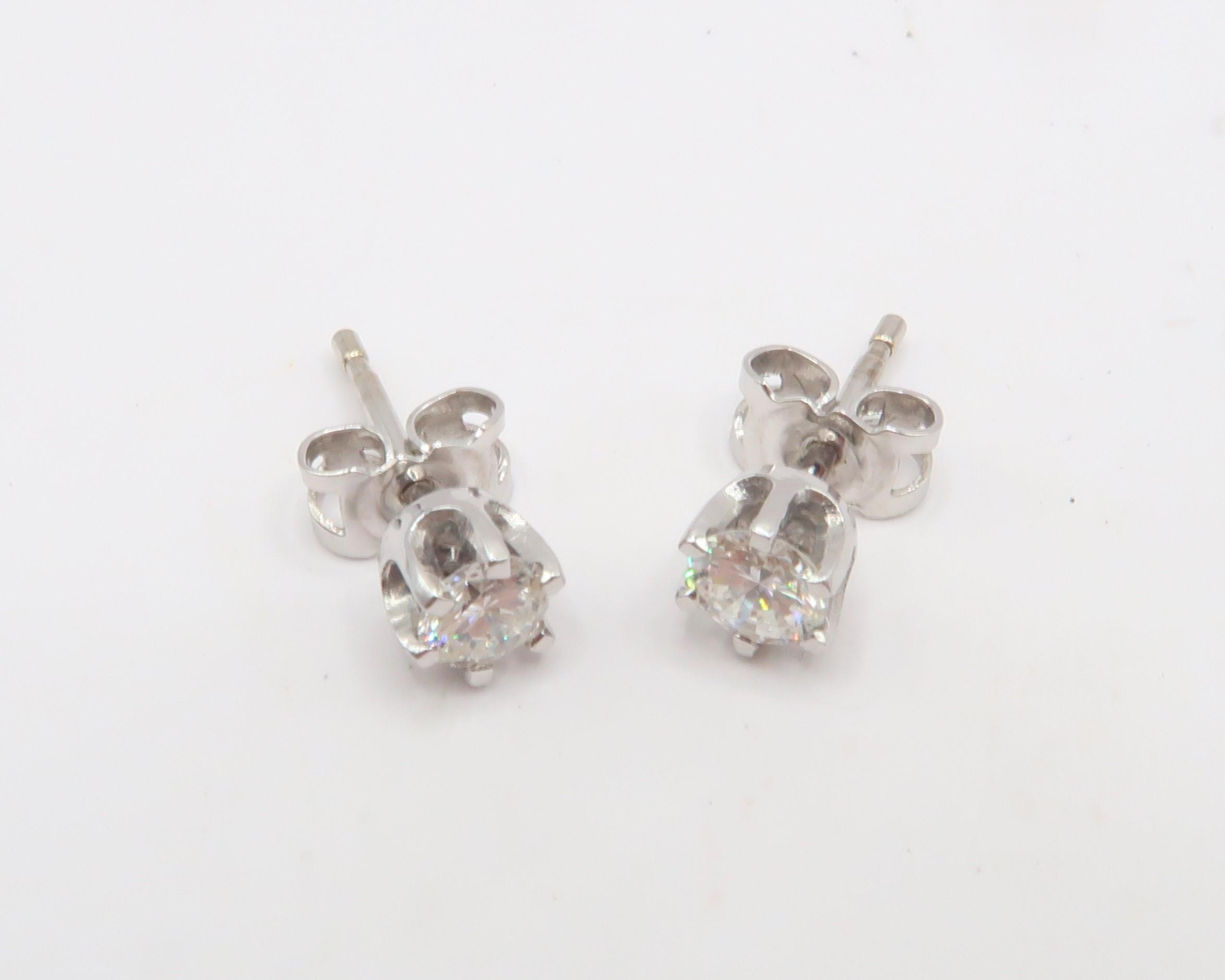 A Pair of 18ct White Gold Well Matched Diamond Stud Ear Rings, approx. 0.40crts Each, Total approx. 0.80crts, Diamonds are a Good Colour and Clarity, Colour Approx. G, Clarity approx. VS2