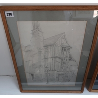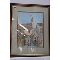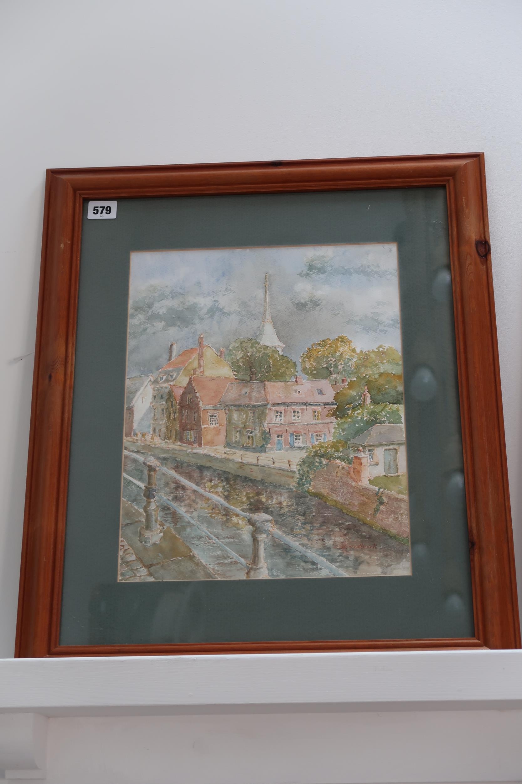 A Watercolour of St Annes, Bruges. Painted by Ronald Westbrook (1926-2012) a local Cambridge based artist. 29 x 36cm.
