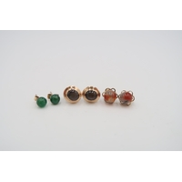 A group of three stick or stock pins, comprising one set with a diamond in 15ct gold circular finial, another apparently unmarked set with solitaire diamond in claw setting and one set with a starburst set seed pearl in 9ct gold finial.