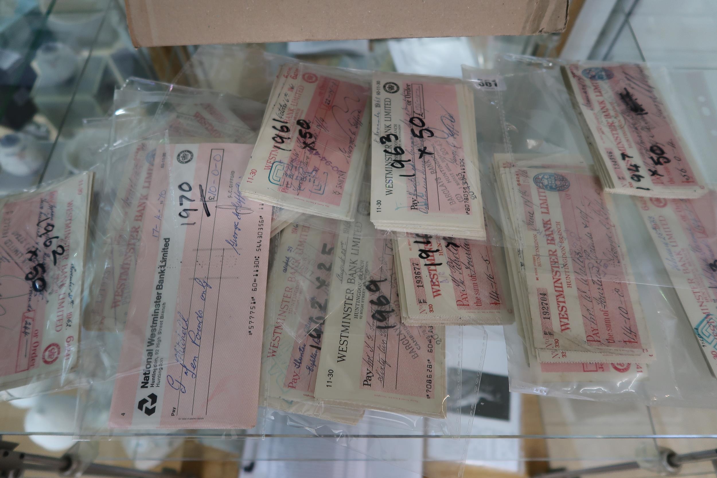A Large Group of War Time Issued Westminster Bank Limited, Huntingdon Branch Red on white Cheques. Mostly Issued Between 1946 - 1970. Approximately 350.