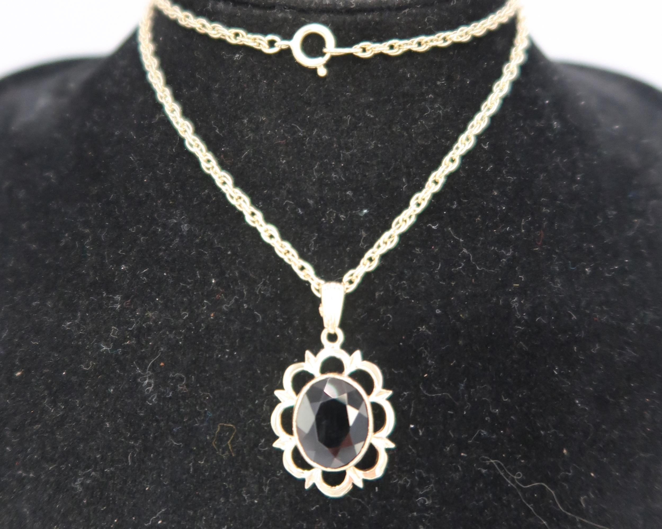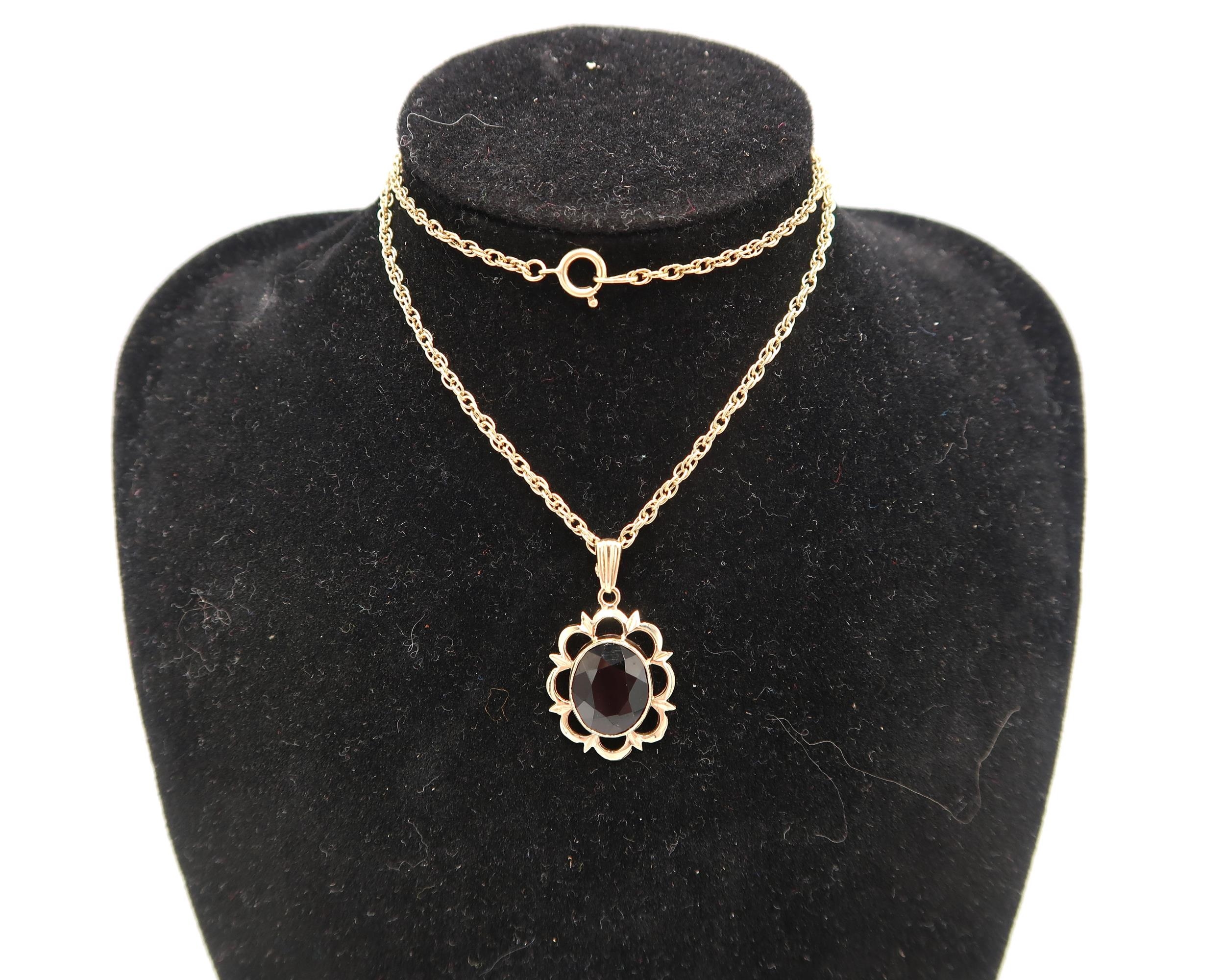 A 9ct Yellow Gold Garnet Pendant on a 9ct Yellow Gold Chain, Pendant approx. 21mm x 16mm not including the Suspension Loop, Chain approx. 40cms Long