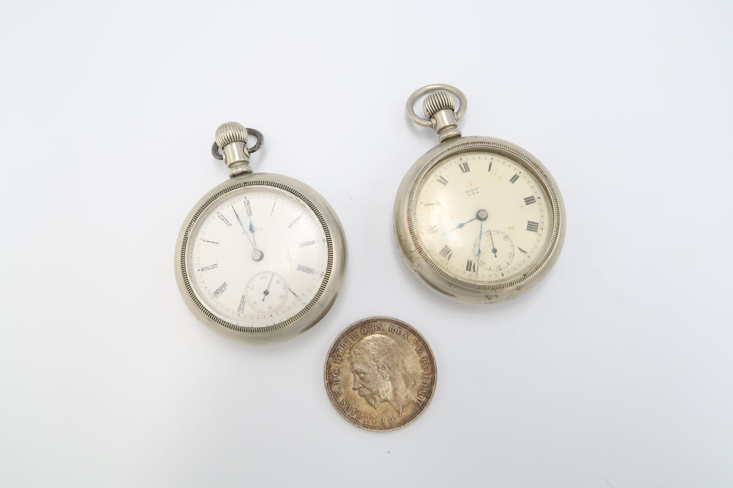 A Pair of Elgin USA Railway Pocket Watches, With a 1935 One Crown. Condition: One Ticks but stops when wound, missing crystal, Other No action when wound.