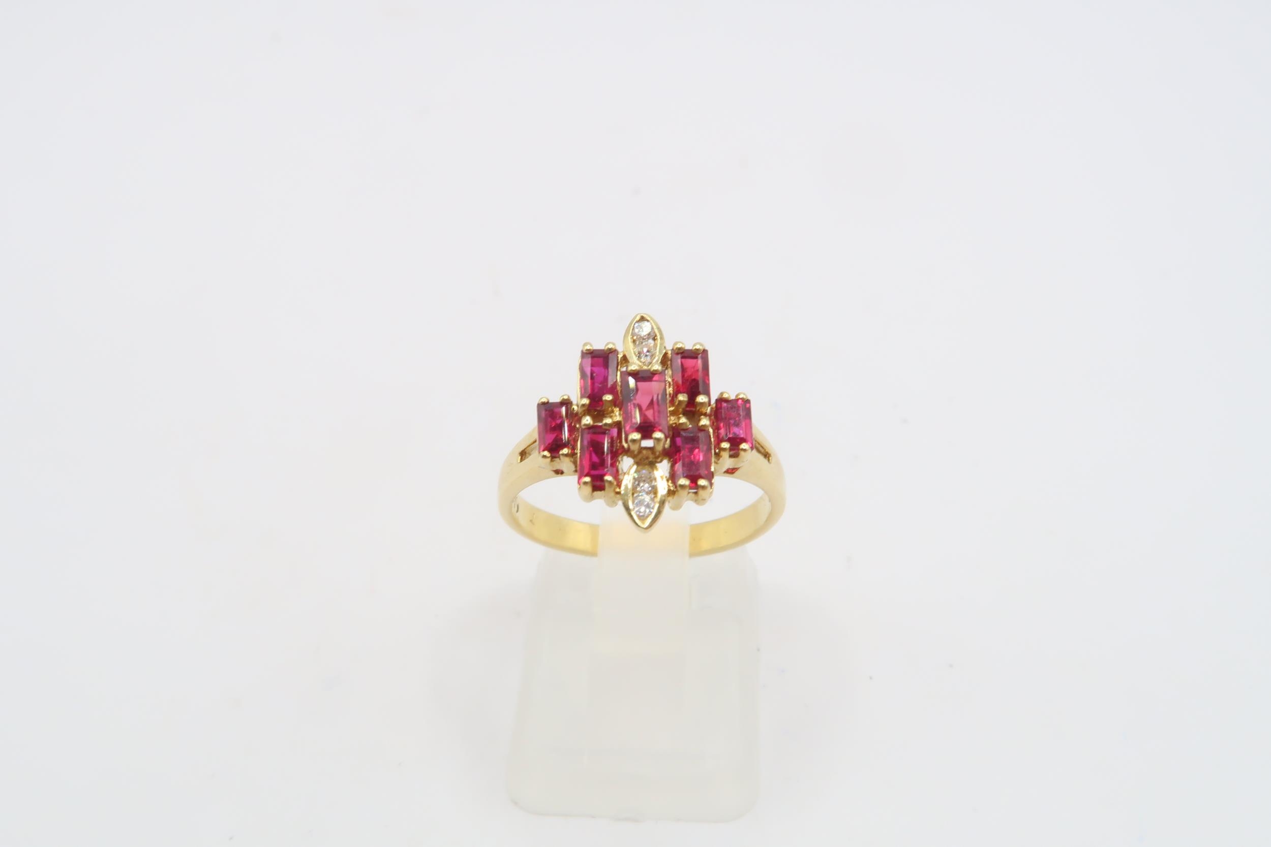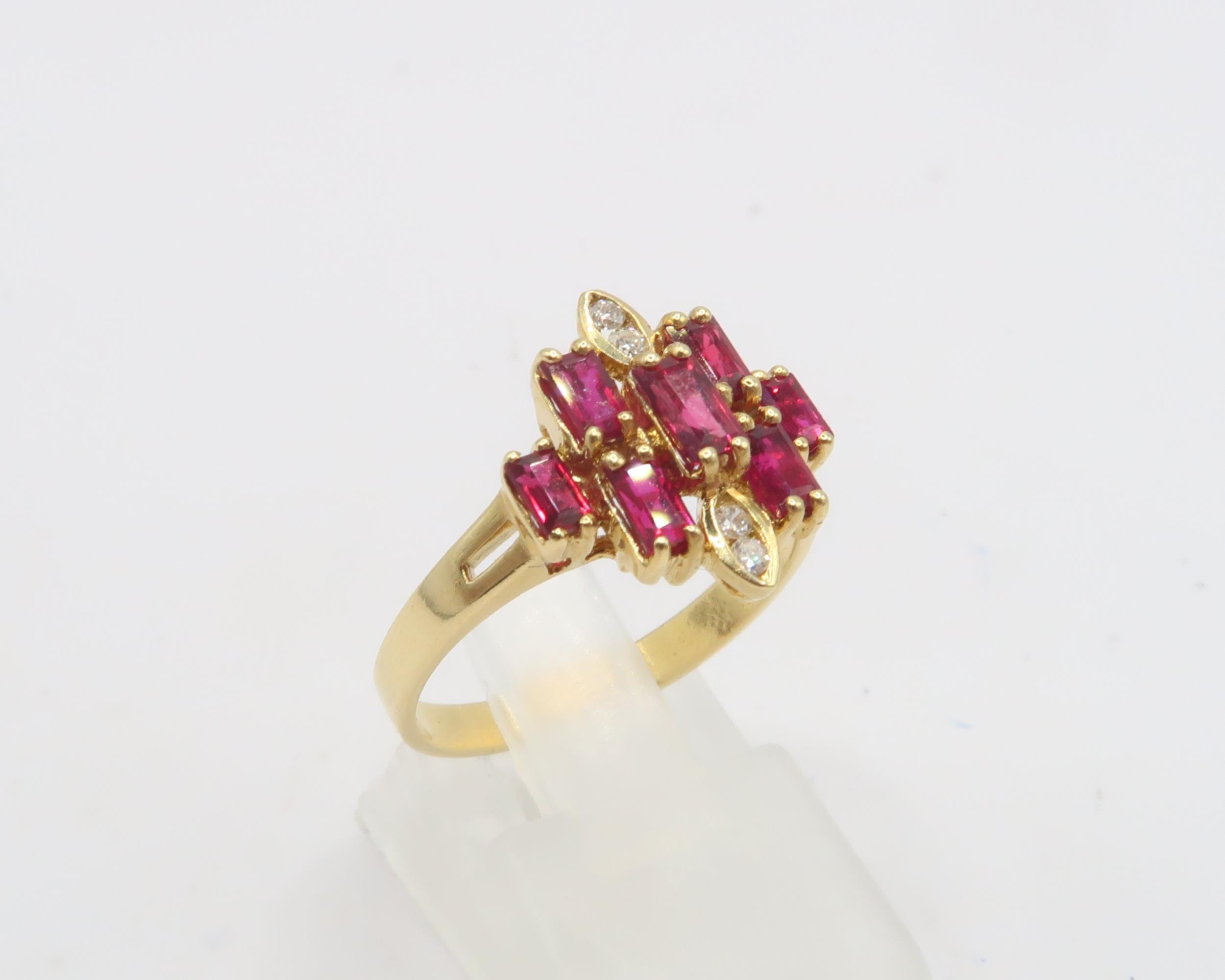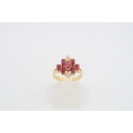 An 18ct Yellow Gold Art Deco Style Ruby and Diamond Ring, Rubies are a Very Good Colour and Well Matched, Diamonds are Bright and Lively, Head Size approx.