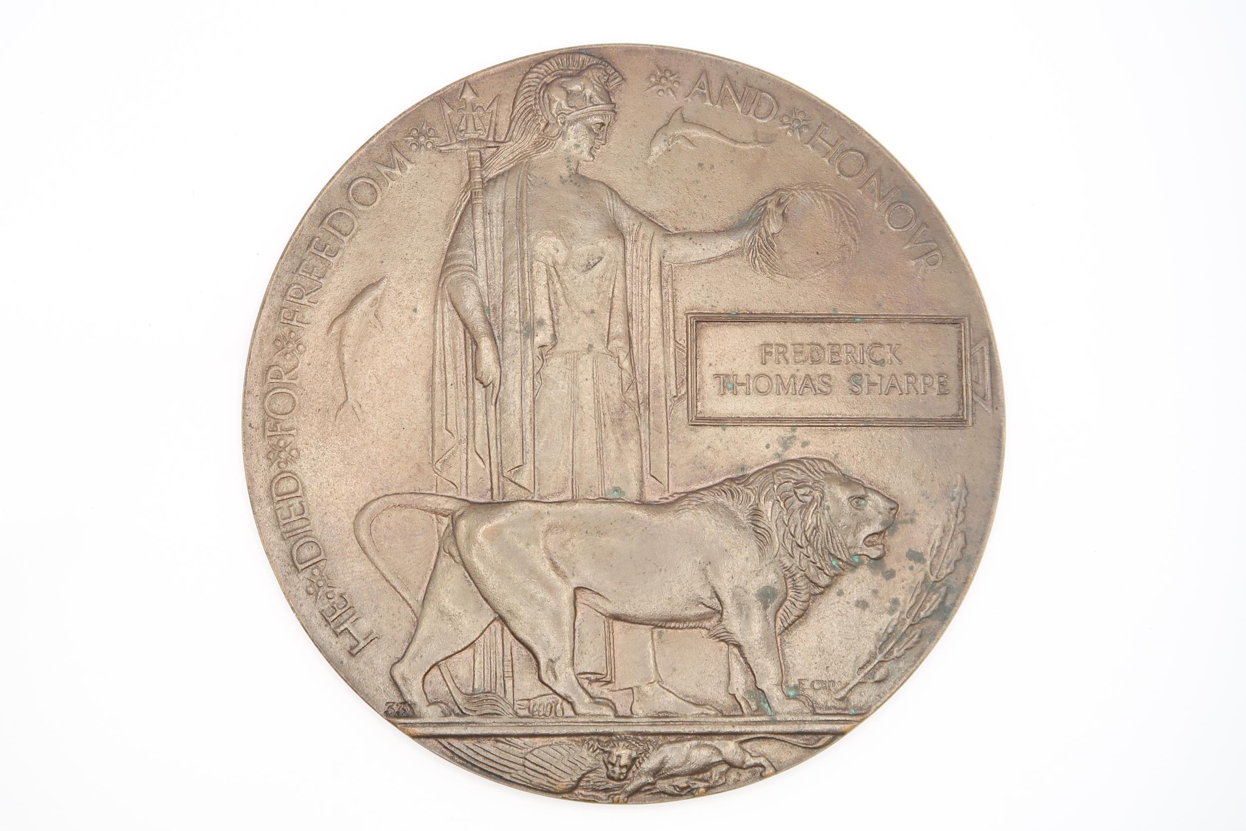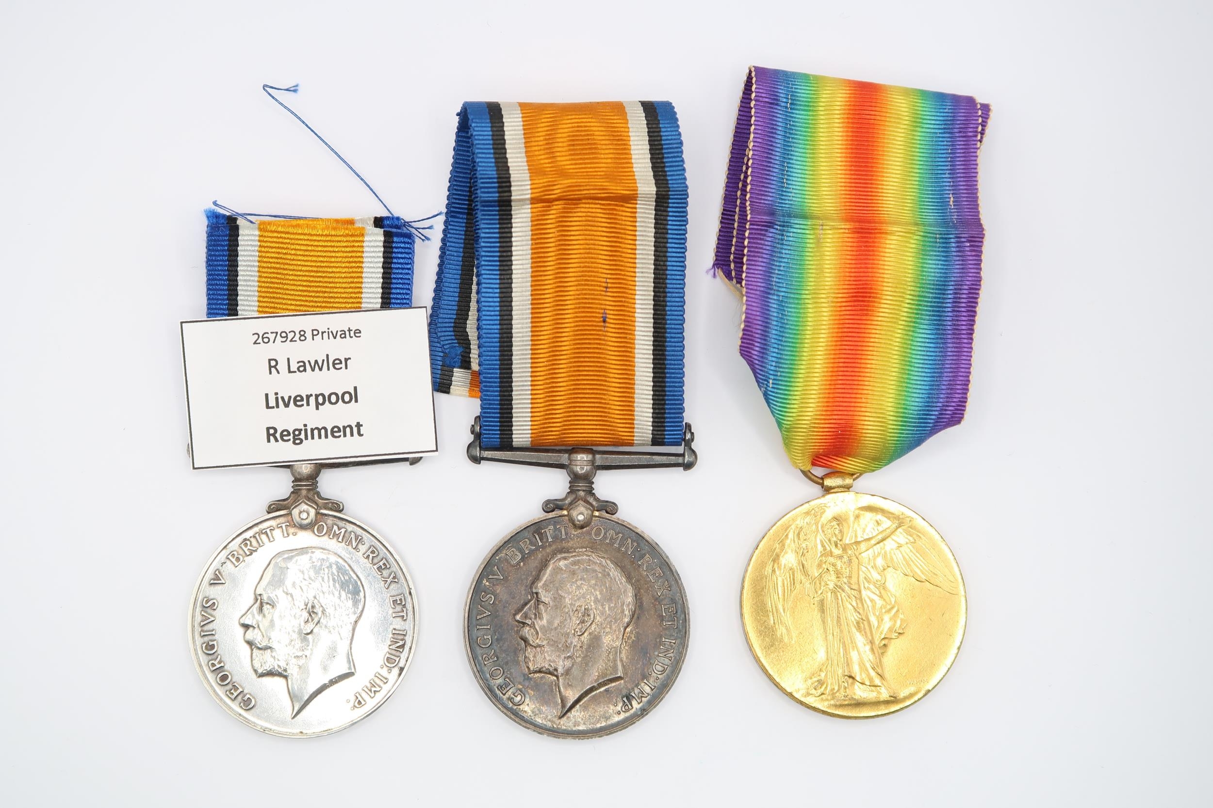 A Pair of British WW1 War Medal 1914 - 1918, Issued to PTE. Robert Lawler 267928, The King's (Liverpool) Regiment Together with another issued to PTE, Frederick Thomas Sharpe 6180, 7th London. along with Death Penny and Great War Medal Belonging to Sharpe