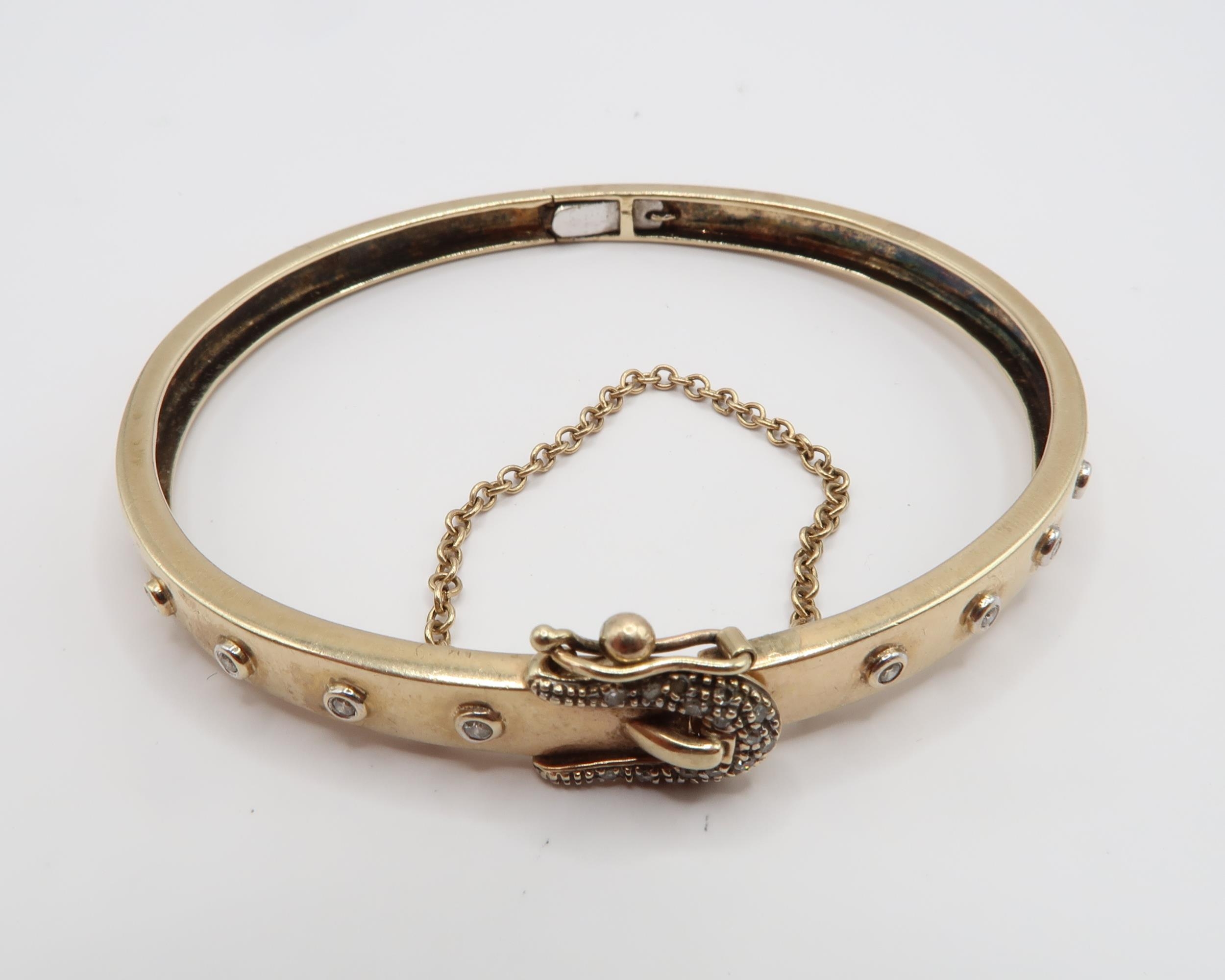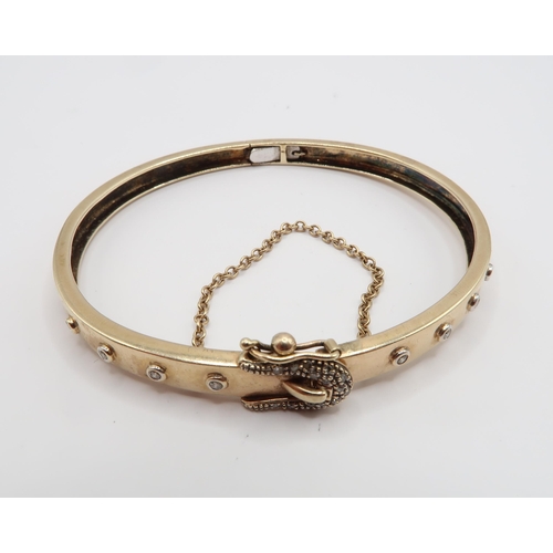 An Unmarked 9ct Tested Bangle with buckle design clasp set with Diamonds
