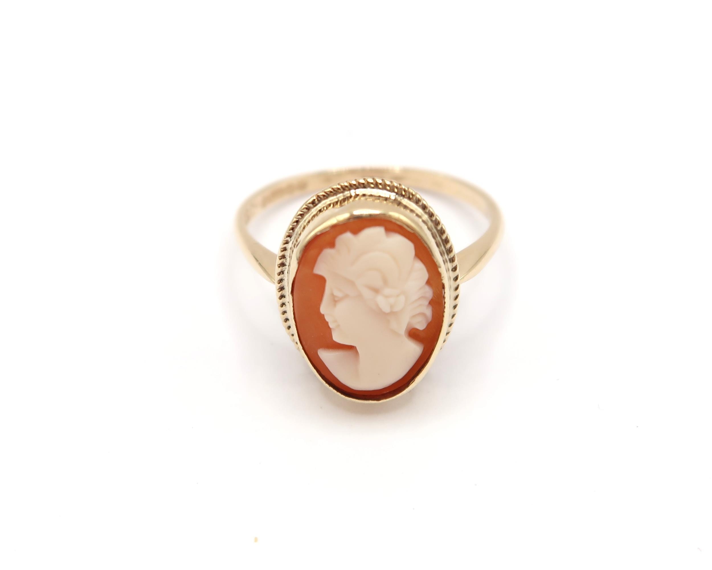 A Vintage Oval Fully Hall Marked 1973 9ct Yellow Gold Cameo Ring, Head Size approx. 15mm x 13mm, Ring Size approx. O/P