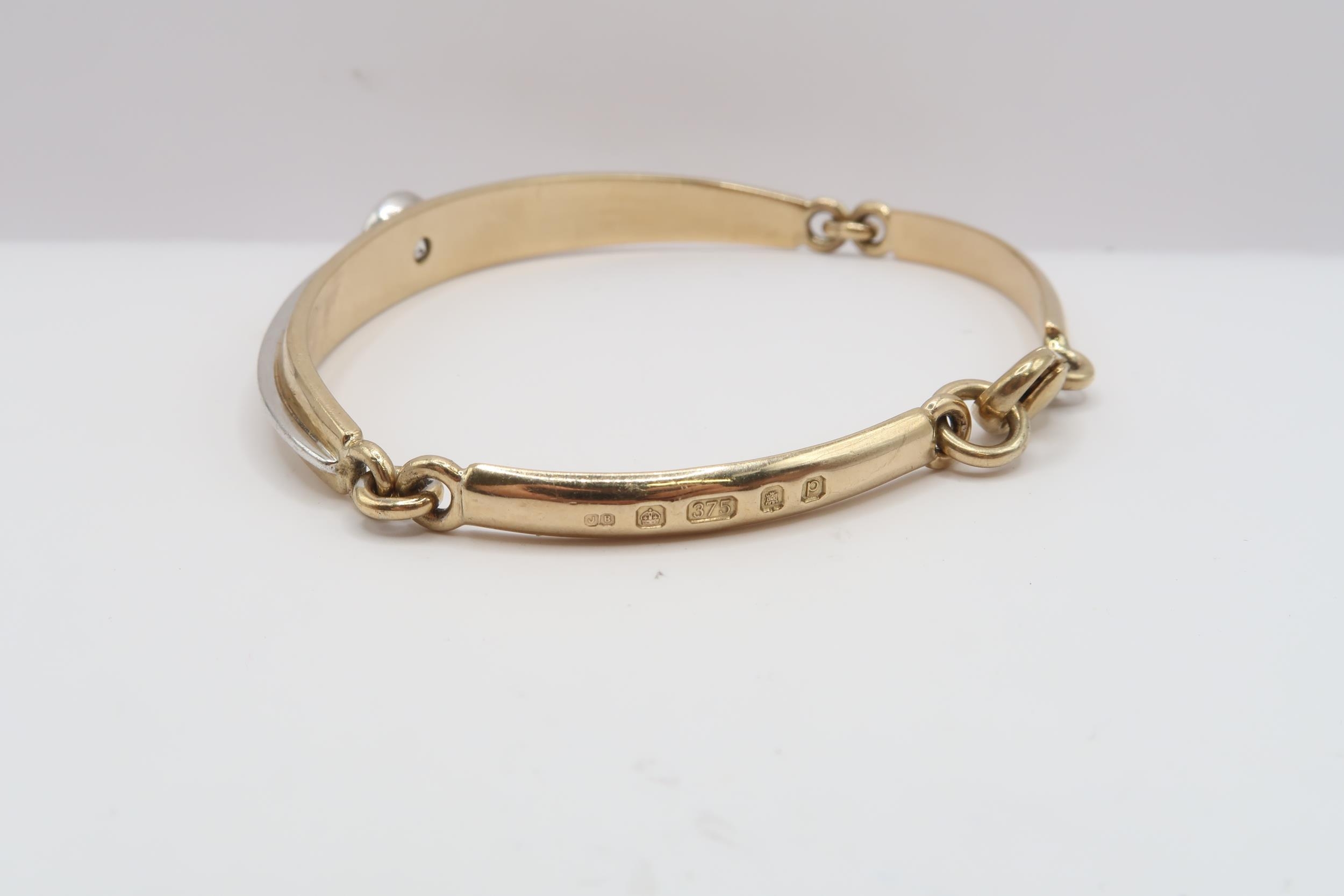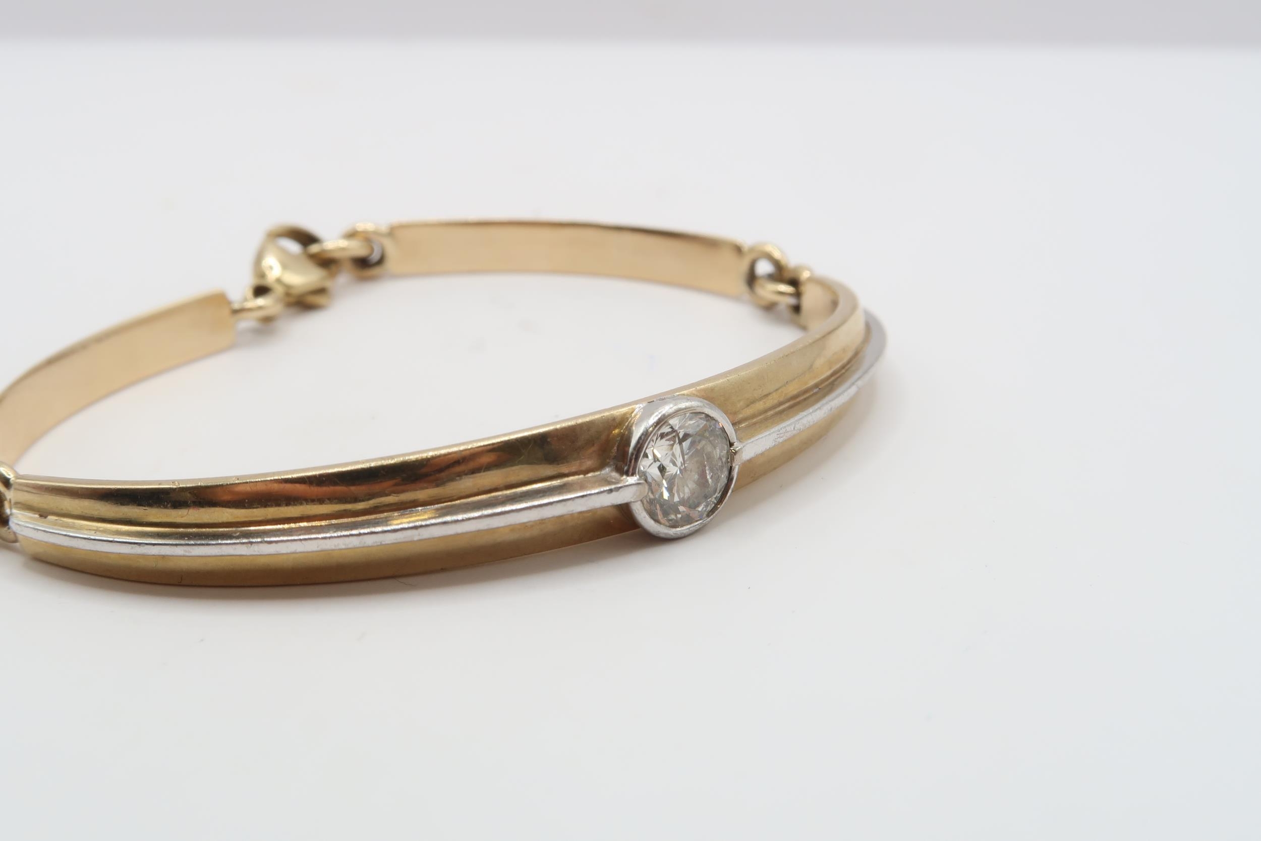 A 9ct bi colour bracelet collet set with a brilliant cut diamond. Estimated 1.60cts I/J colour, SI2/I1 clarity. Weight 21.38 grams
