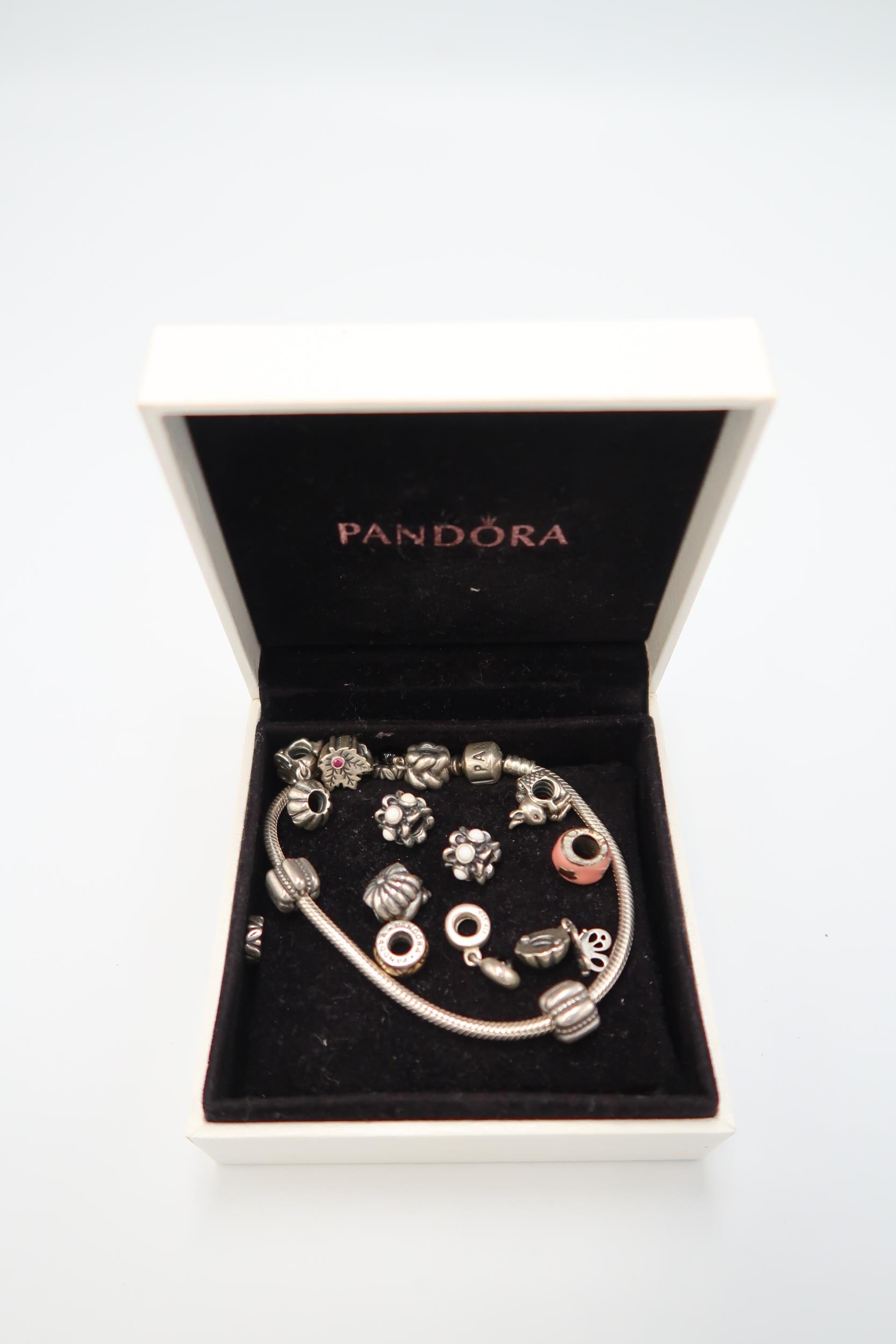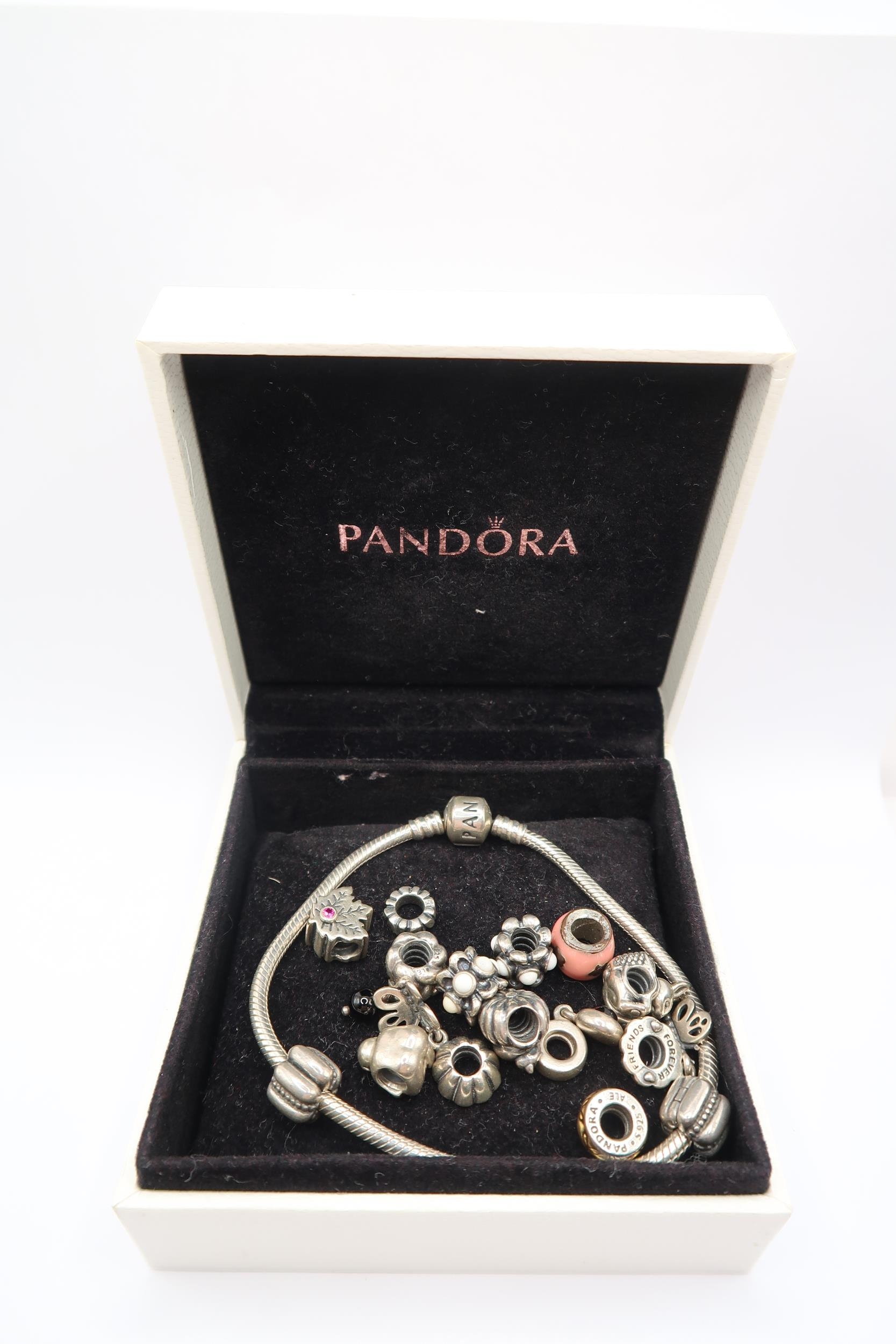 A Group Pandora Charm Bracelet & Charms Weight: 64g